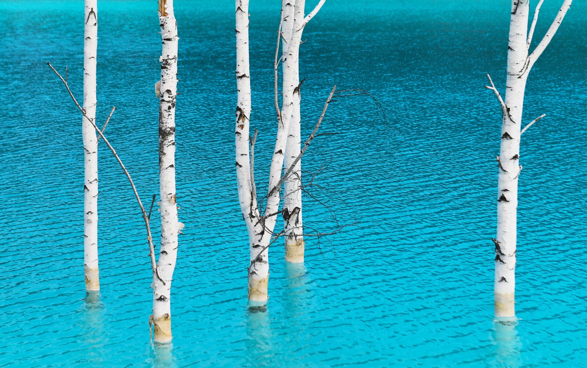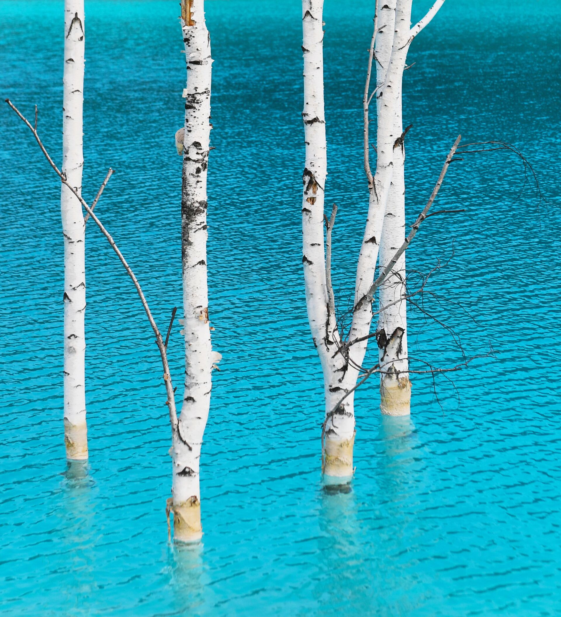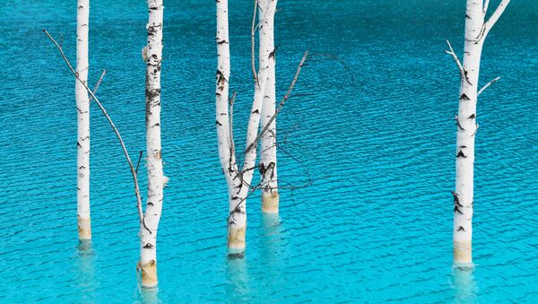 أشجار البتولا في المياه الزرقاء بالقرب من محطة الطاقة الكهربائية رقم 5 في نوفوسيبيرسك.
