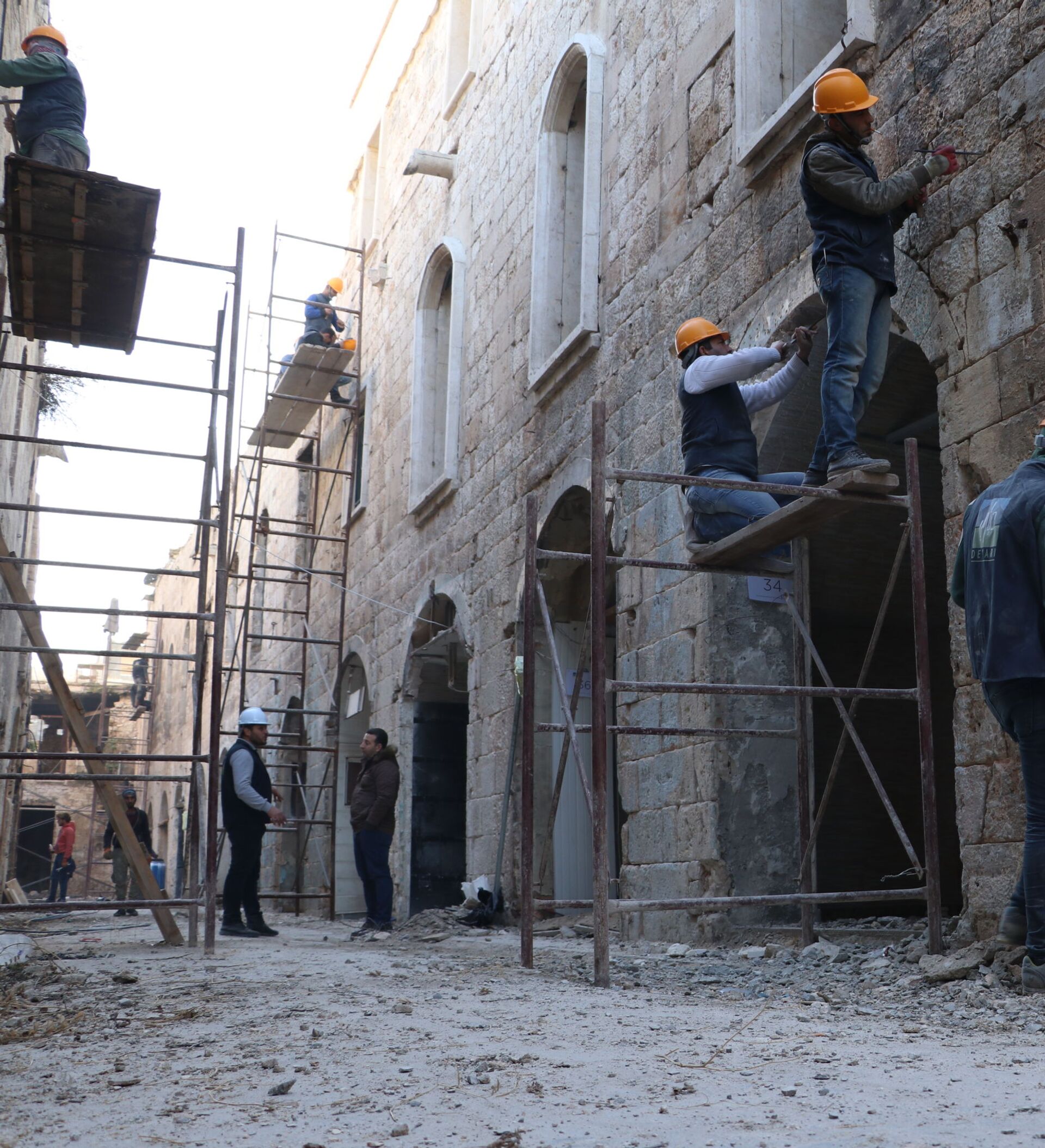 وأوضحت خربوطلي أن سوق خان الحرير يمتد على طول 140 مترا ويتضمن 60 محلاً، "وقد قسمنا عمليات الترميم إلى قسمين، شمالي يتضمن 18 محلاً، وجنوبي يتضمن 42 محلاً، وتتضمن أعمال الترميم الأعمال الحجرية للواجهات على كامل الارتفاعات، وكذلك فتح وتفريغ الحشوات بين الحجارة لإعادة تكحيلها"، لافتة إلى أن المدخل الشمالي للسوق الذي يضم خان الحرير وخان جاكي، تعرض خلال سنوات الحرب لدمار كبير وفيه محلان مدمران بشكل كامل، وستتم إعادة ترميمها وتأهيلها "كما يشمل الترميم في القسم الشمالي أعمالا إنشائية للمحال التجارية وفق نظام العمارة التقليدية الحلبية والبناء بالحجر الكلسي باستخدام طريقة الغمس، كما سيتم تزويد محلات السوق بأبواب خشبية وهياكل معدنية للحماية، وبعتبات بازلتية وبحديد حماية علوي مع الزجاج".