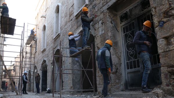 وبدأت الحياة تعود تدريجيًا إلى أسواق حلب القديمة، التي أوليت عناية كبيرة من المعنيين لإعادة تأهيلها، وعودة النشاط التجاري إليها، لما تمثله من أهمية وثقل اقتصادي كبير في حلب، وسورية بشكل عام، وجرى تأهيل نحو 7 أسواق من أصل 55 سوقاً تتوضع على مساحة 16 هكتاراً ويبلغ طول المسقوف منها 14 كيلومتراً، وهي بذلك أطول سوق مسقوفة في العالم.