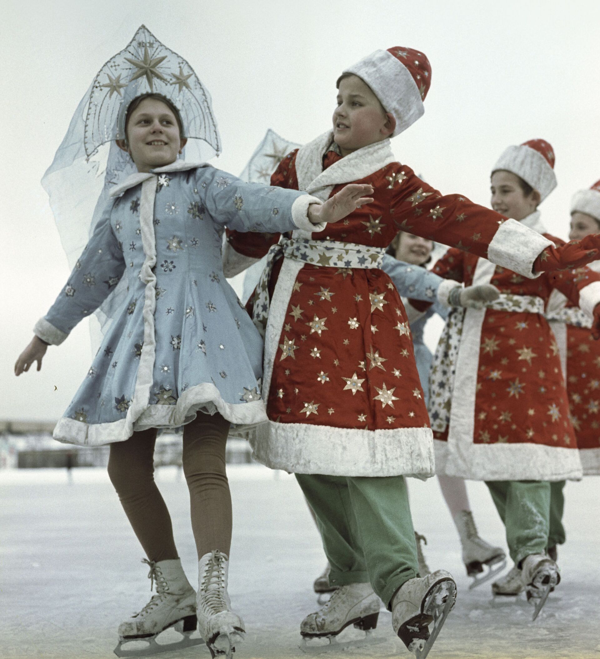 تلاميذ مدرسة يتزحلقون على الجليد في "لوجنيكي" في موسكو، عام 1966