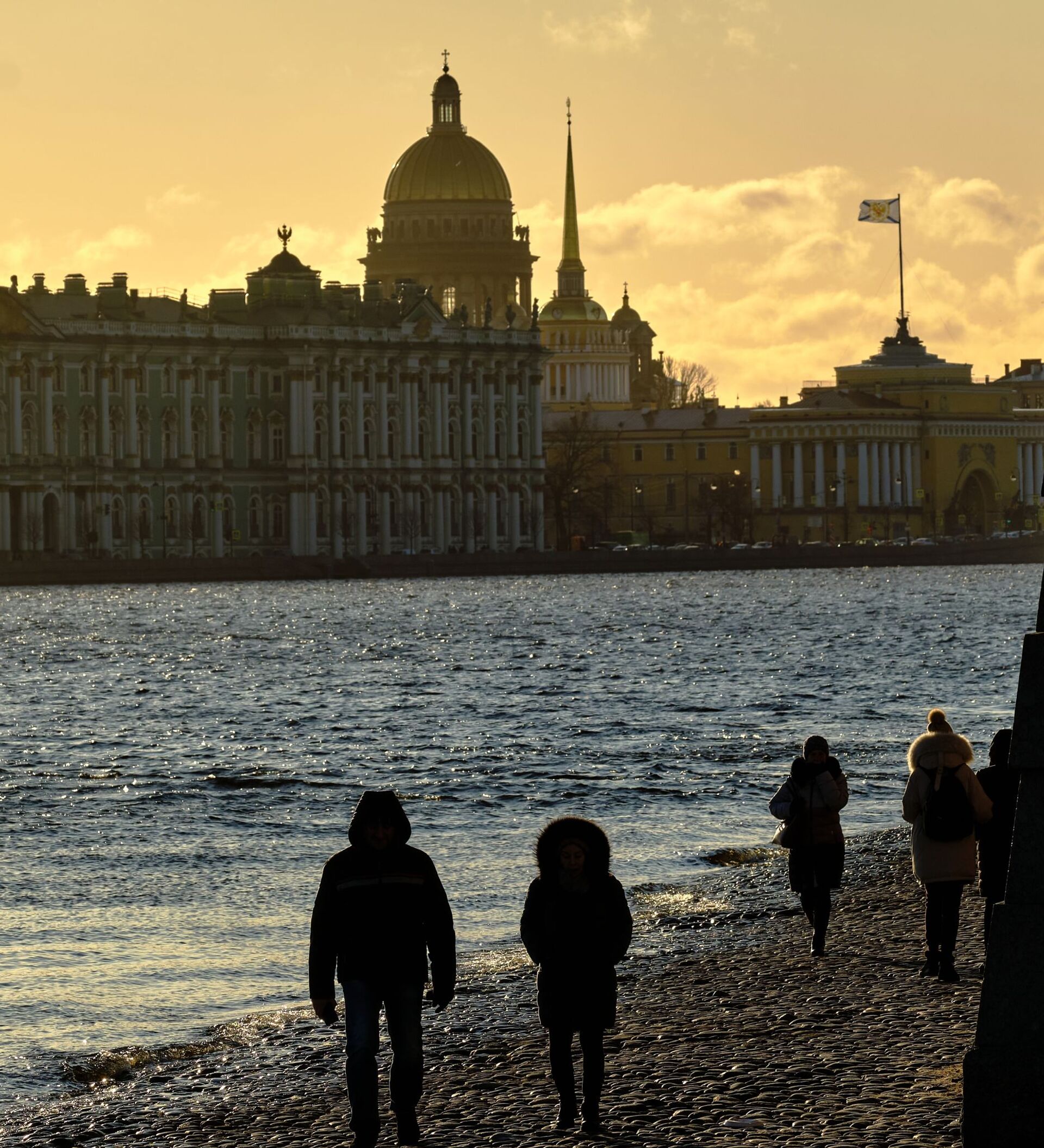 المارة على ضفة قلعة بطرس وبولس في مدينة سان بطرسبورغ
