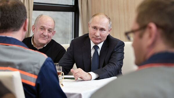 الرئيس الروسي فلاديمير بوتين يشارك في مراسم افتتاح خط السكك الحديدية عبر جسر القرم، شبه جزيرة القرم، روسيا 23 ديسمبر 2019 - سبوتنيك عربي