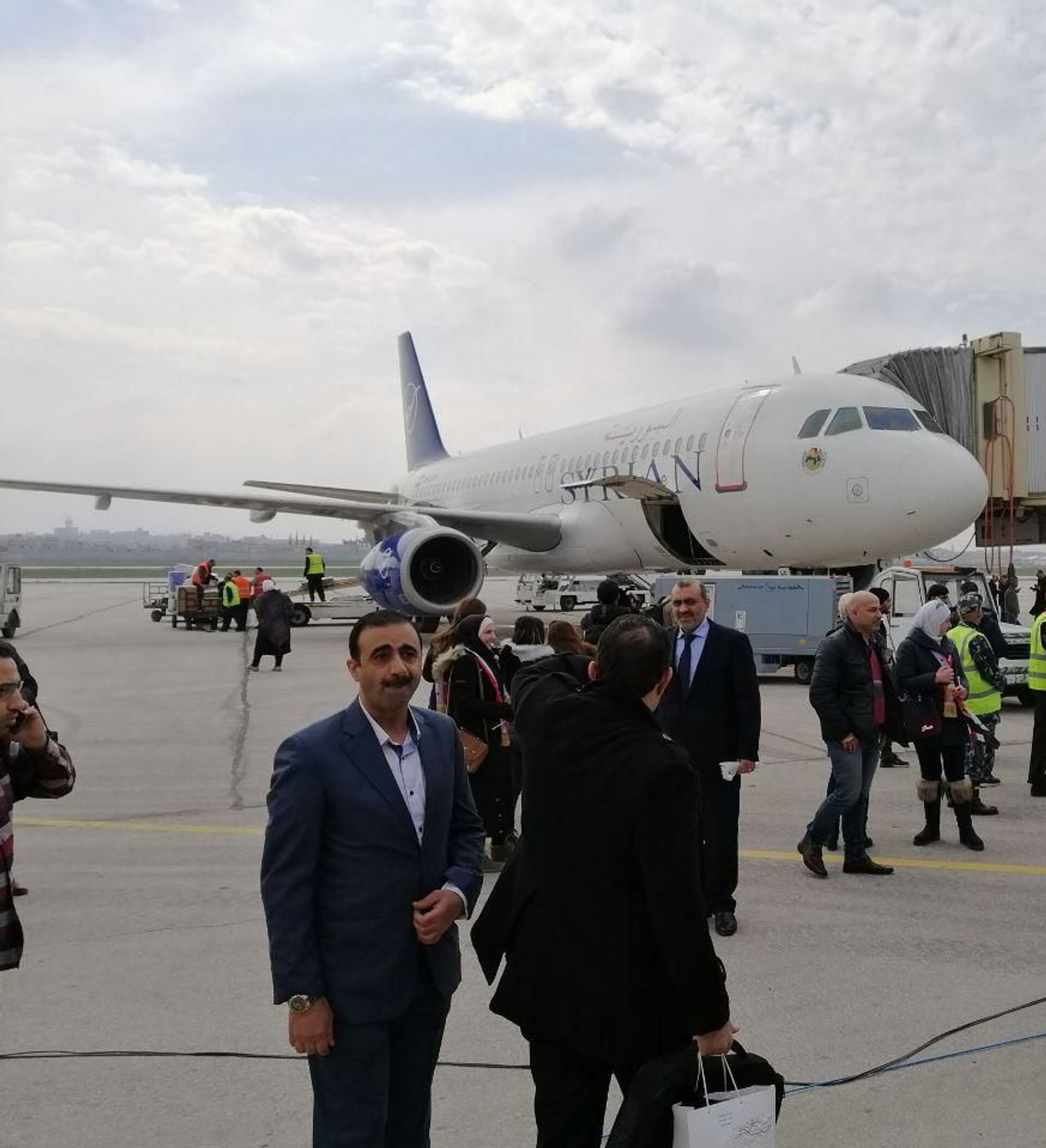 وكانت قد وصلت، في وقت سابق اليوم، أول رحلة جوية على الخطوط السورية إلى مطار حلب الدولي، بعد انقطاع عن استقبال الرحلات لمدة 8 سنوات.