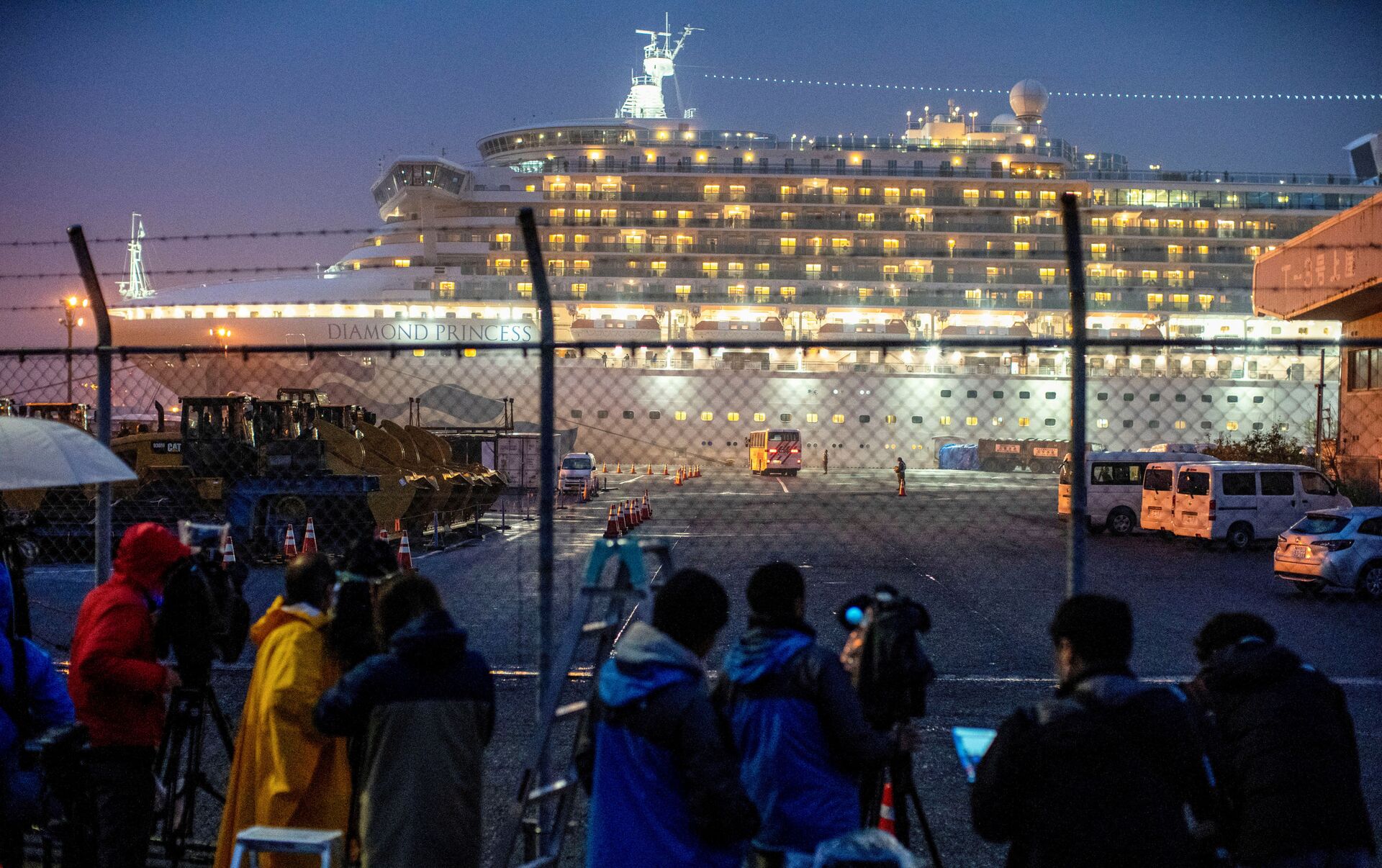 حافلة تصل بالقرب من سفينة دايموند برنسيس حيث تم تسجيل إصابة عشرات الركاب بفيروس كورونا في اليابان - سبوتنيك عربي