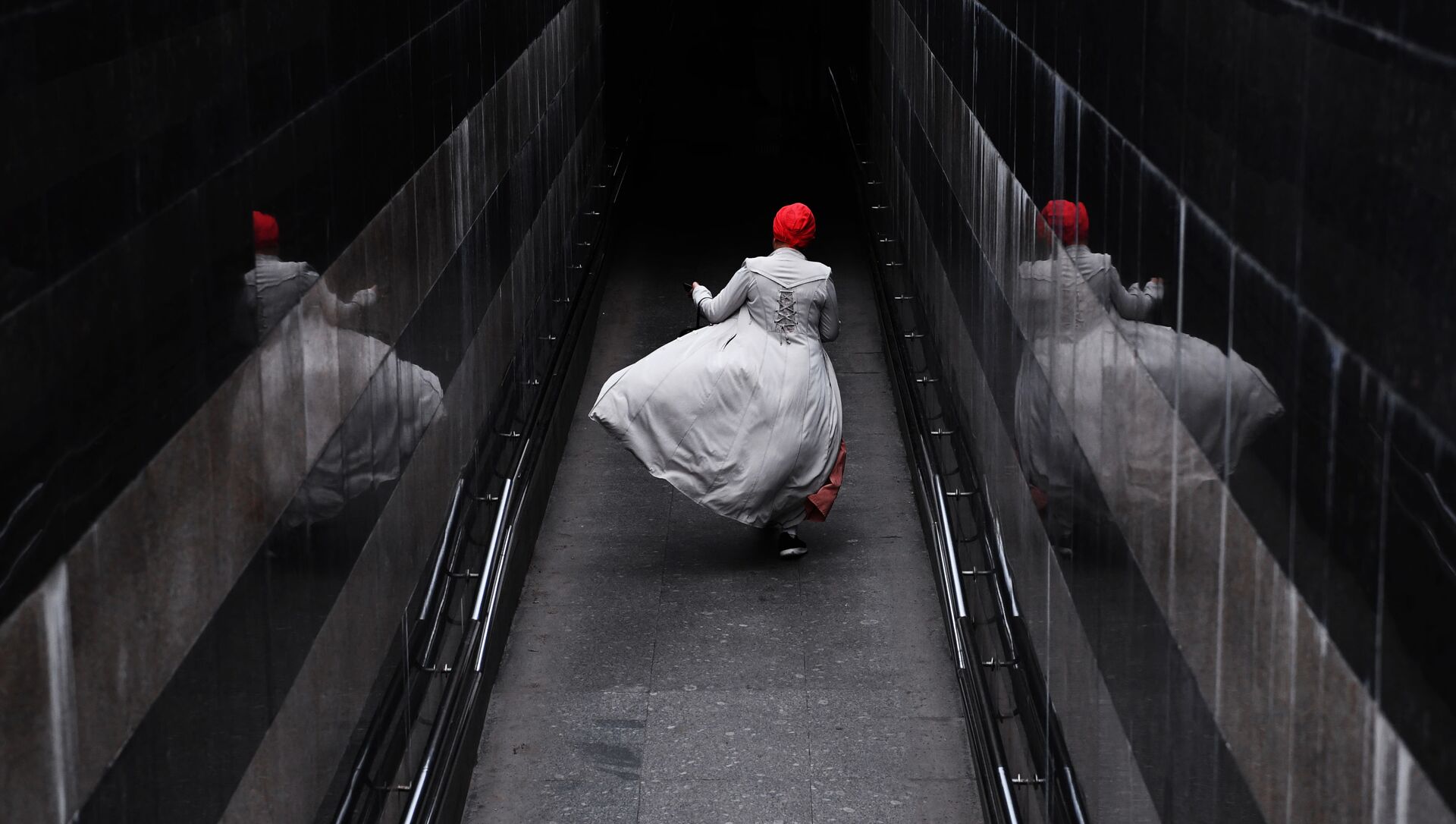 © Sputnik . Alexey Maishev / الانتقال إلى بنك الصورامرأة تسير في إحدى أروقة موسكو، روسيا 13 مارس 2020