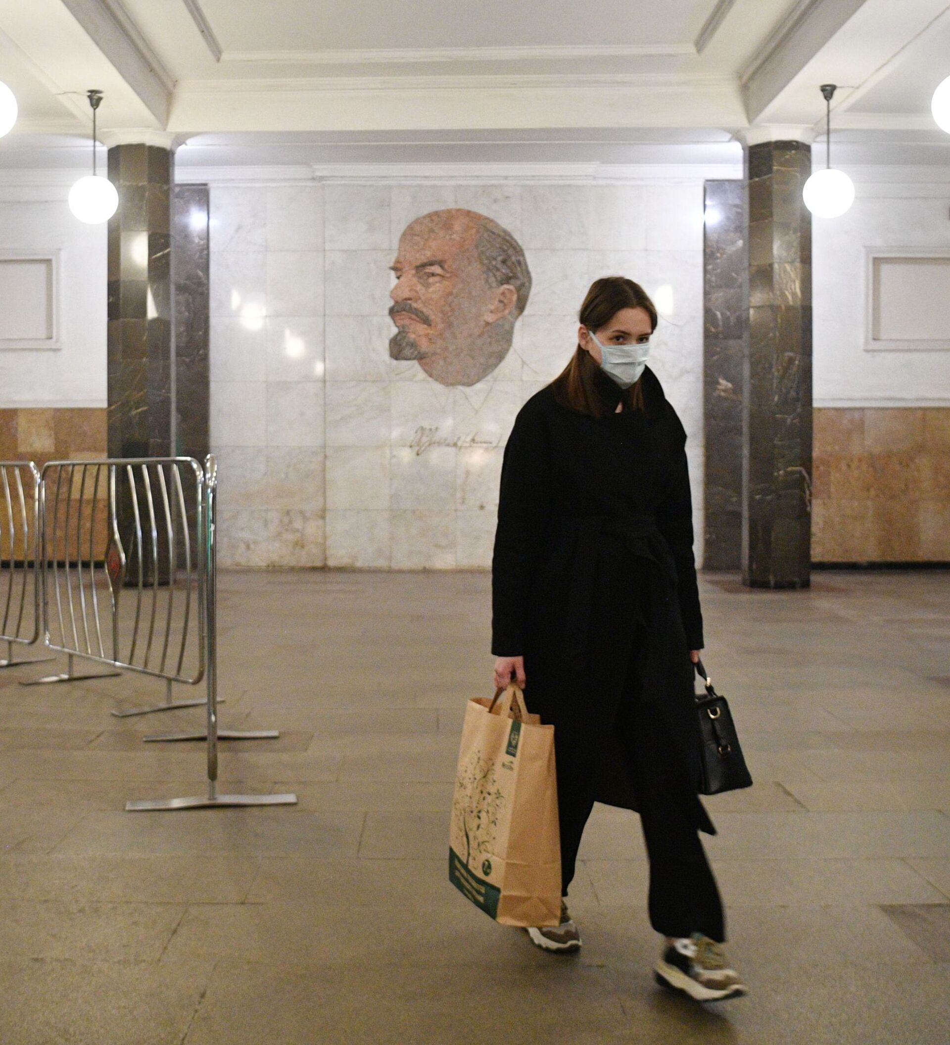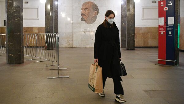 © Sputnik . Evgeniy Biyatov / الانتقال إلى بنك الصورمحطة "مكتبة لينين" مترو في موسكو، انتشار فيروس كورونا، روسيا 24 مارس 2020