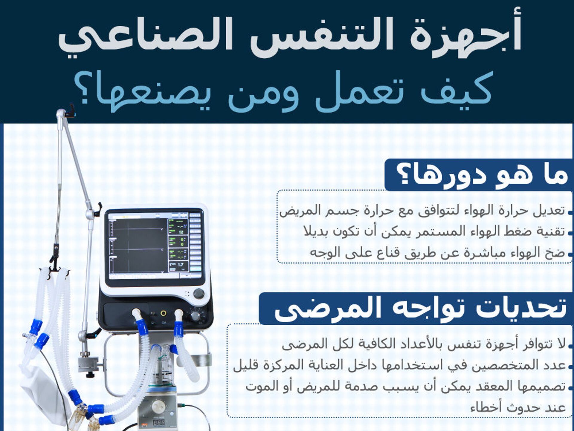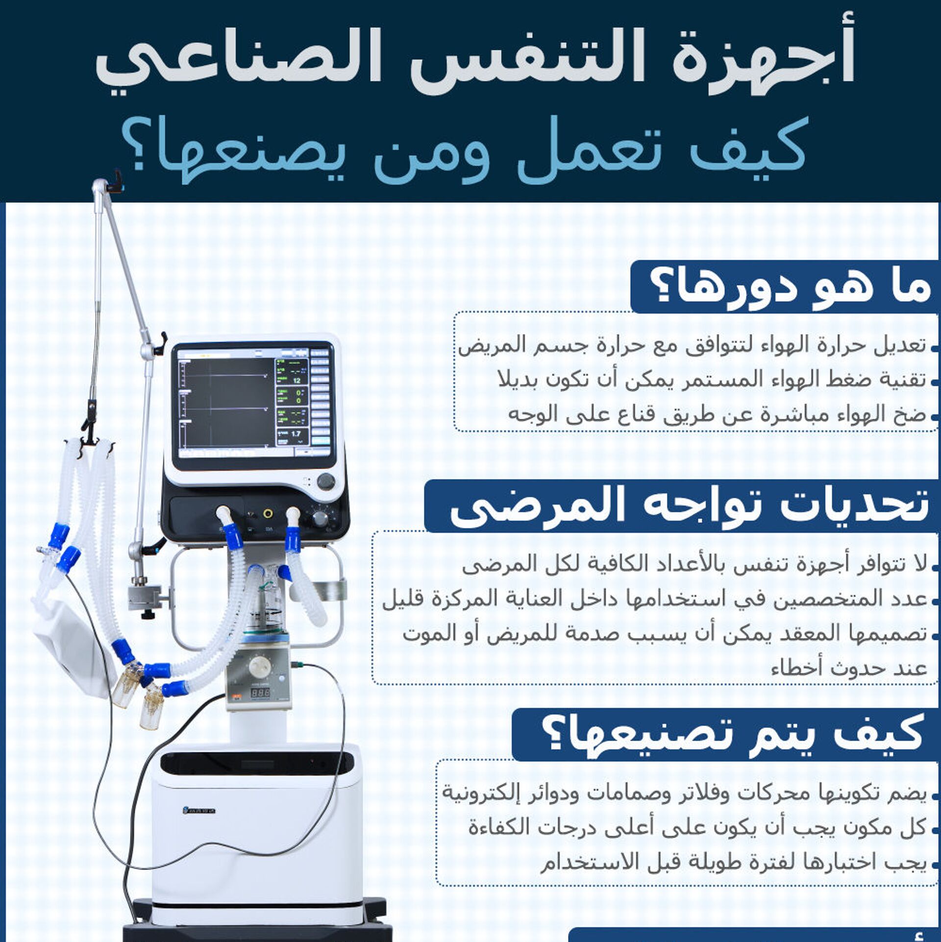 يلعب جهاز التنفس الصناعي دورا حاسما في برامج الرعاية الصحية لمصابي فيروس كورونا المستجد، الذي تحول إلى وباء عالمي (جائحة)، لأنه يستطيع نقل الأكسجين إلى الرئتين عندما يعجز المريض عن الحصول عليه بالطريقة العادية نتيجة تدهور حالته الصحية.