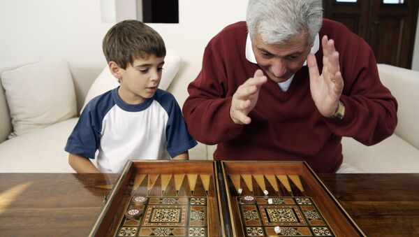 جد يلعب مع حفيده لعبة الطاولة (أو النَّرد) - سبوتنيك عربي
