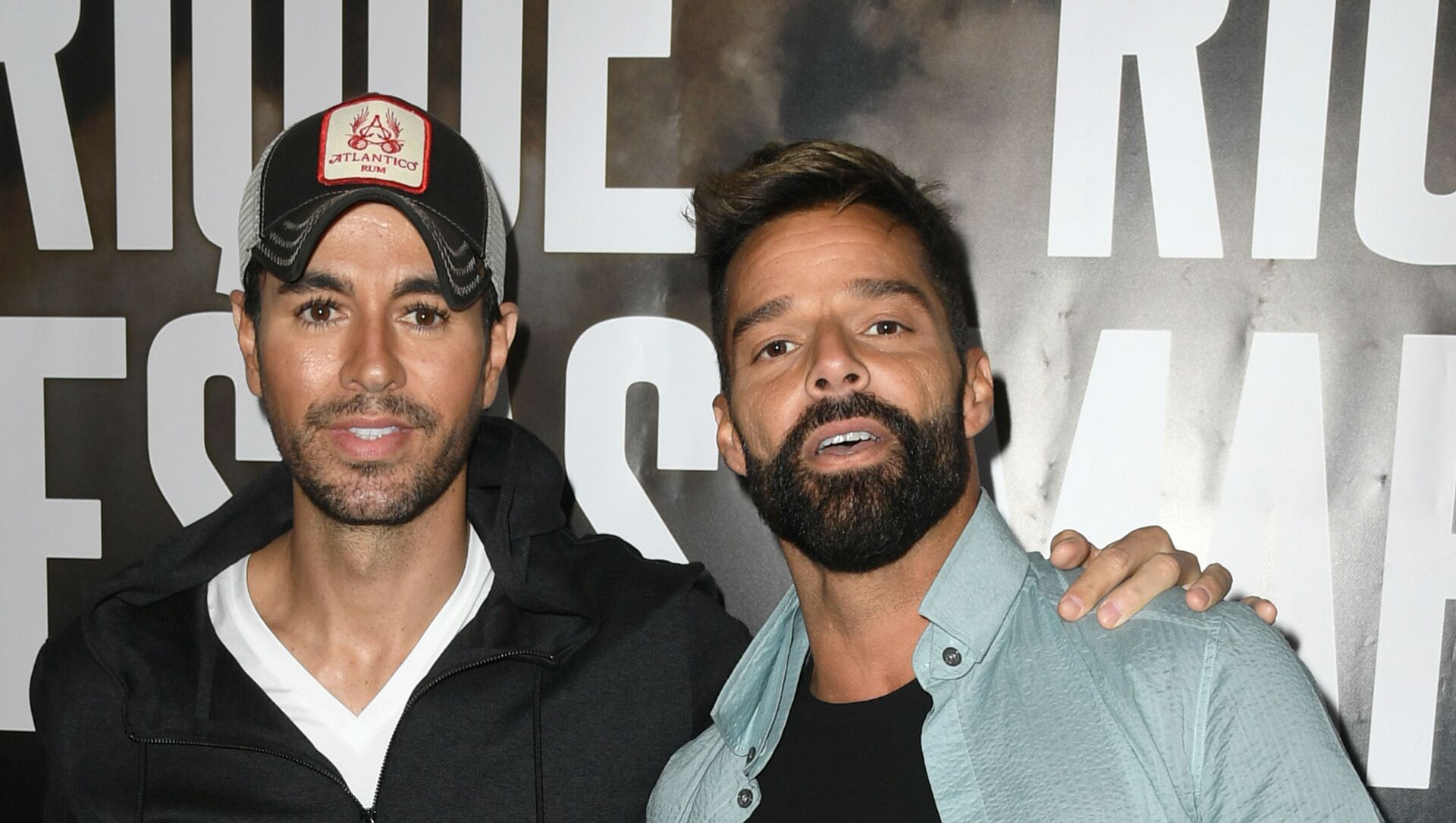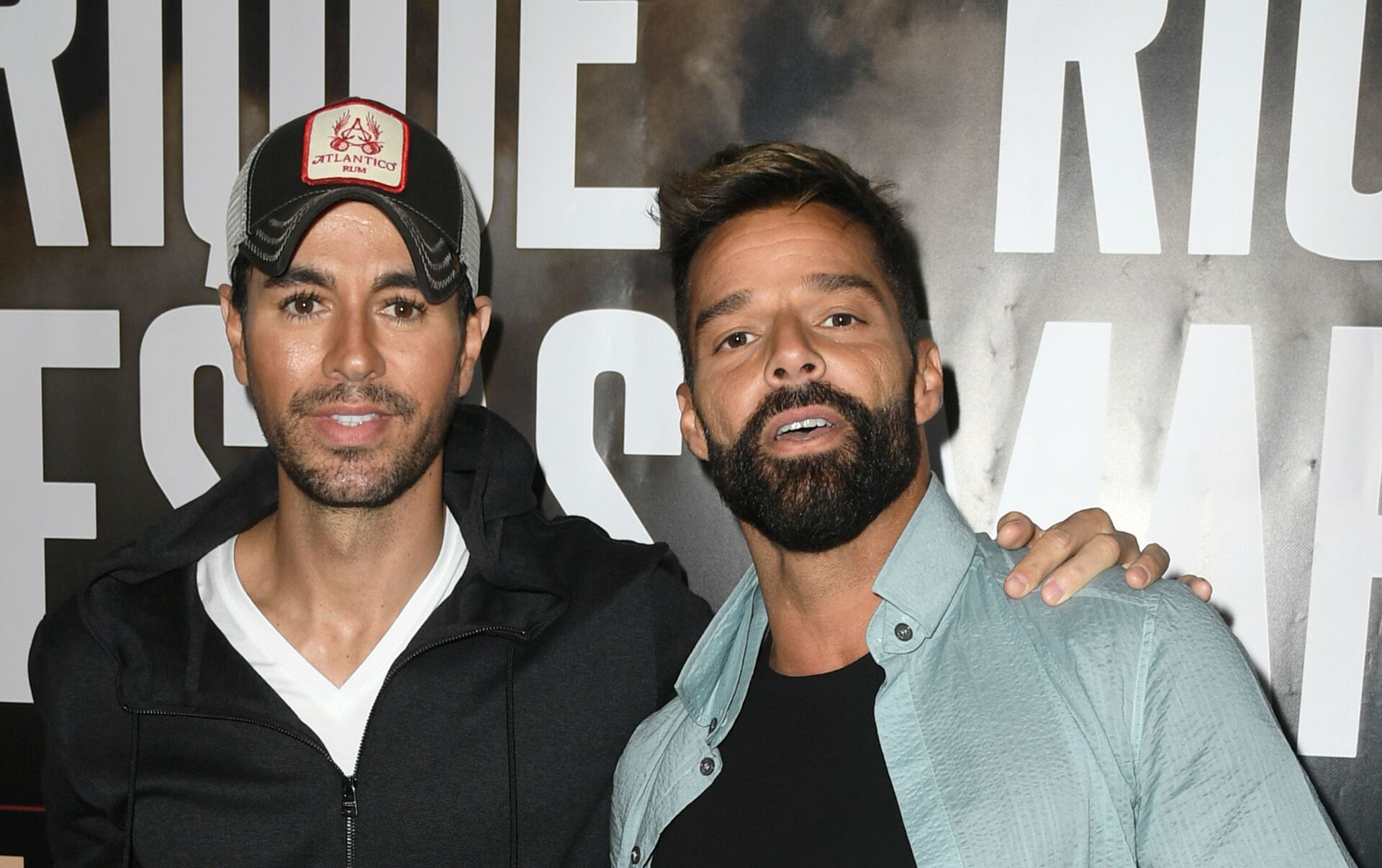 © AFP 2023 / KEVIN WINTERالمغني الإسباني إنريكي إغليسياس برفقة المغني ريكي مارتن، مارس 2020