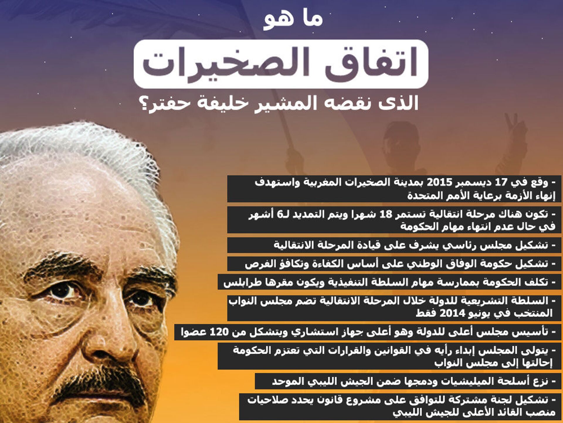 إنفوجرافيك... ما هو اتفاق الصخيرات الذي نقضه المشير خليفة حفتر؟