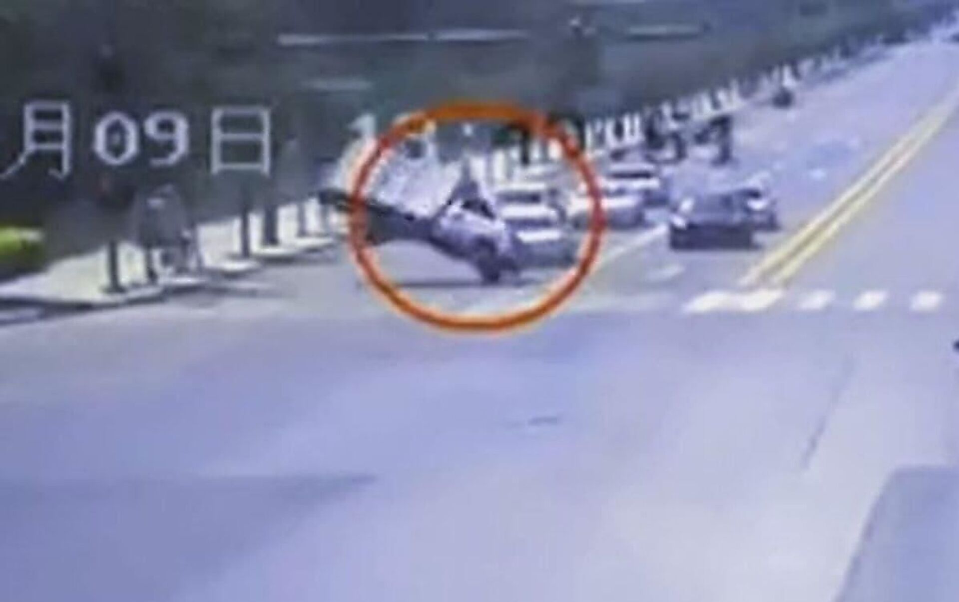 شاهد... شاحنة تطير في الهواء بسبب الرياح العاتية بالصين