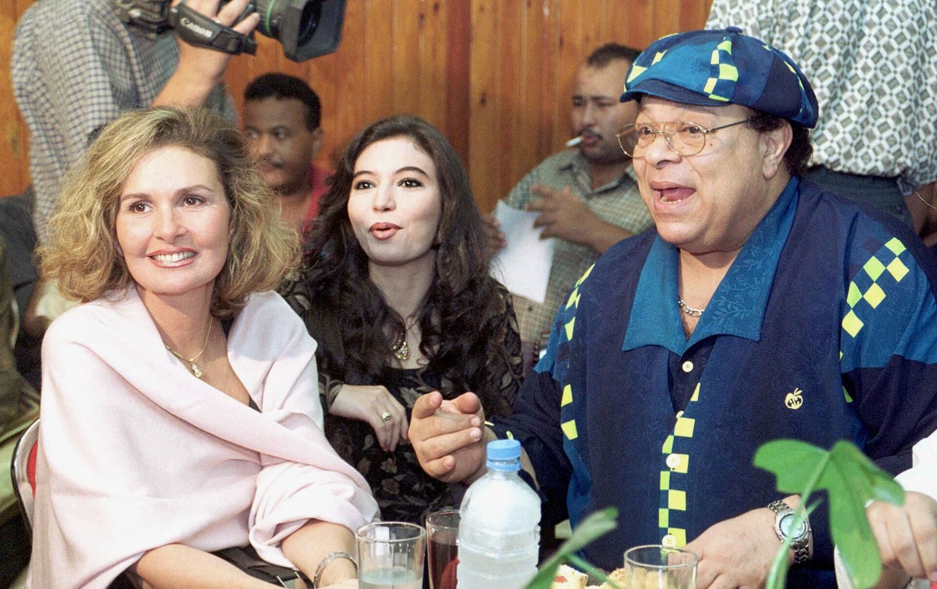 © AFP 2023 / MOHAMMED AL-SEHITIالفنان المصري إبراهيم نصر مع المطربة المصرية غادة رجب والفنانة المصرية يسرا