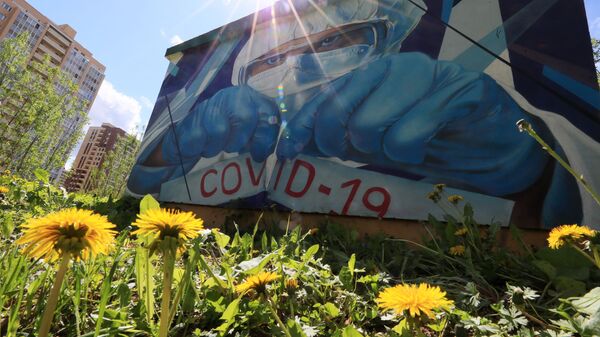 رسم غرافيتي لدعم الأطباء في مكافحة المرض الفيروس كوفيد -19، الذي يسببه فيروس كورونا، في أودينتسوفو بضواحي موسكو - سبوتنيك عربي