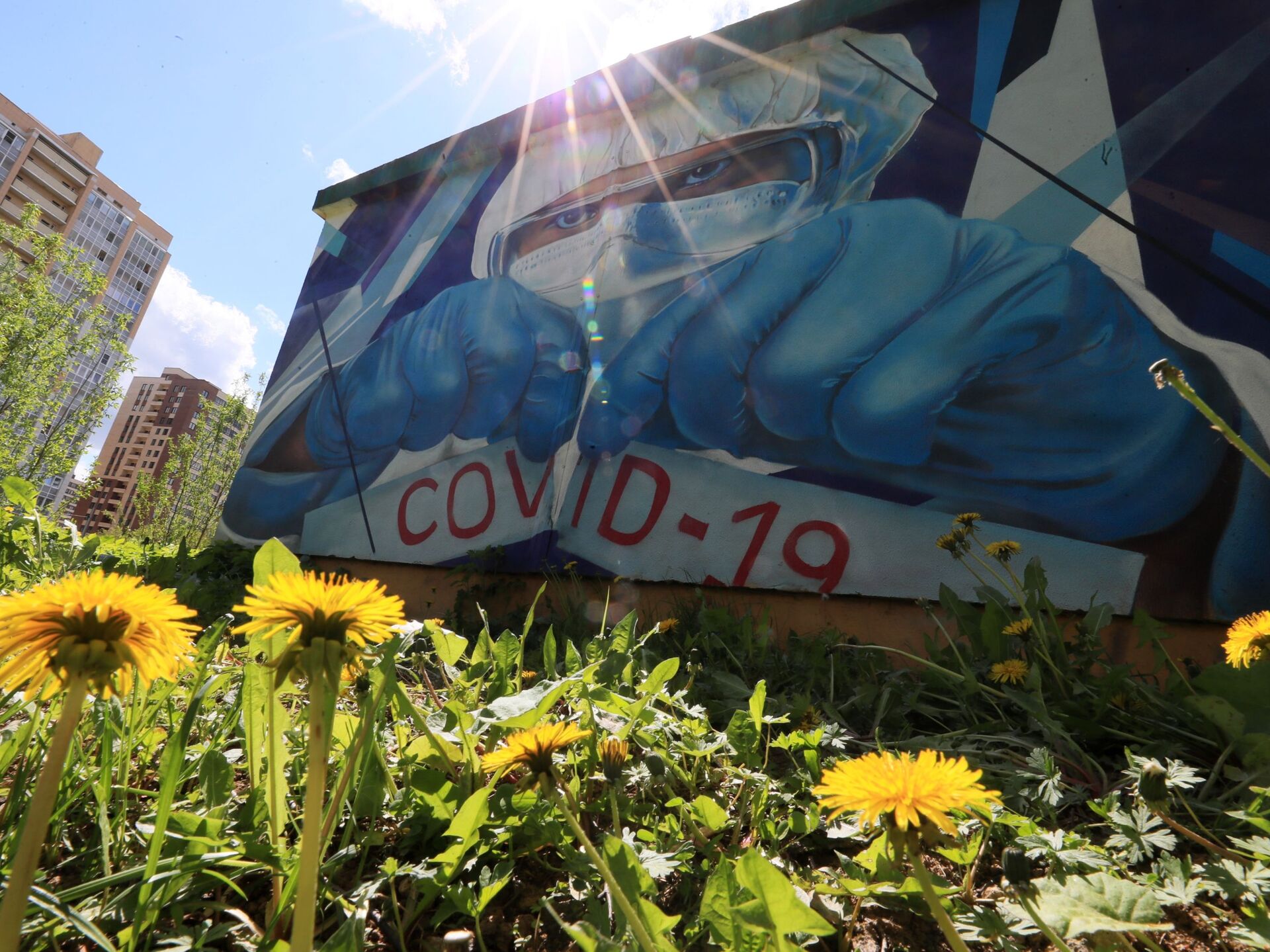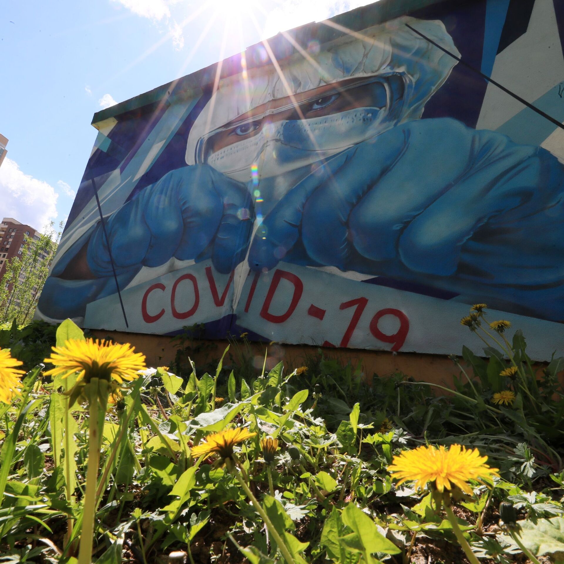 © REUTERS / Evgenia Novozheninaرسم غرافيتي لدعم الأطباء في مكافحة المرض الفيروس "كوفيد -19"، الذي يسببه فيروس "كورونا"، في أودينتسوفو بضواحي موسكو