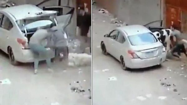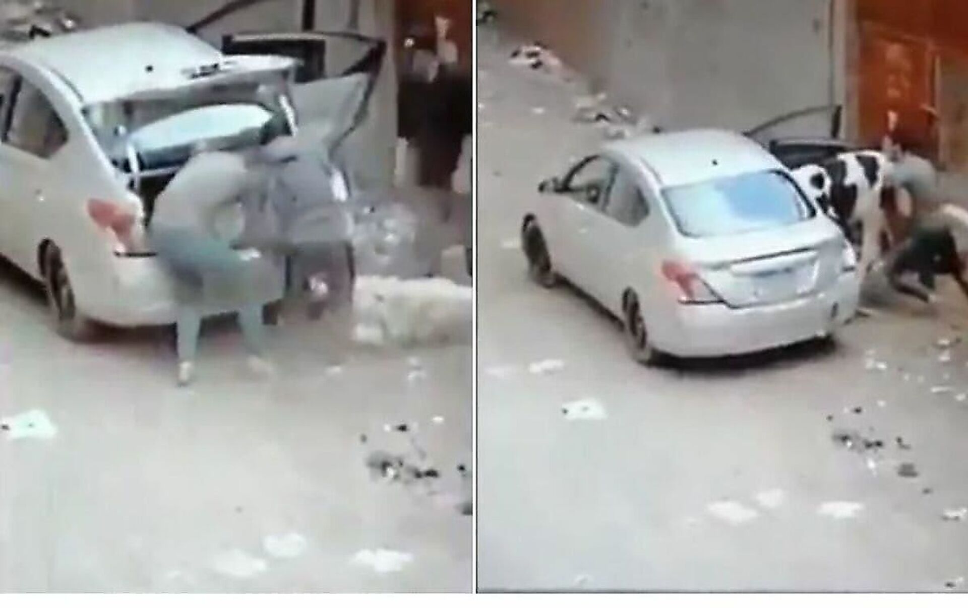 لصوص يسرقون بقرة وخروفين ويضعوهم في سيارة صغيرة... فيديو