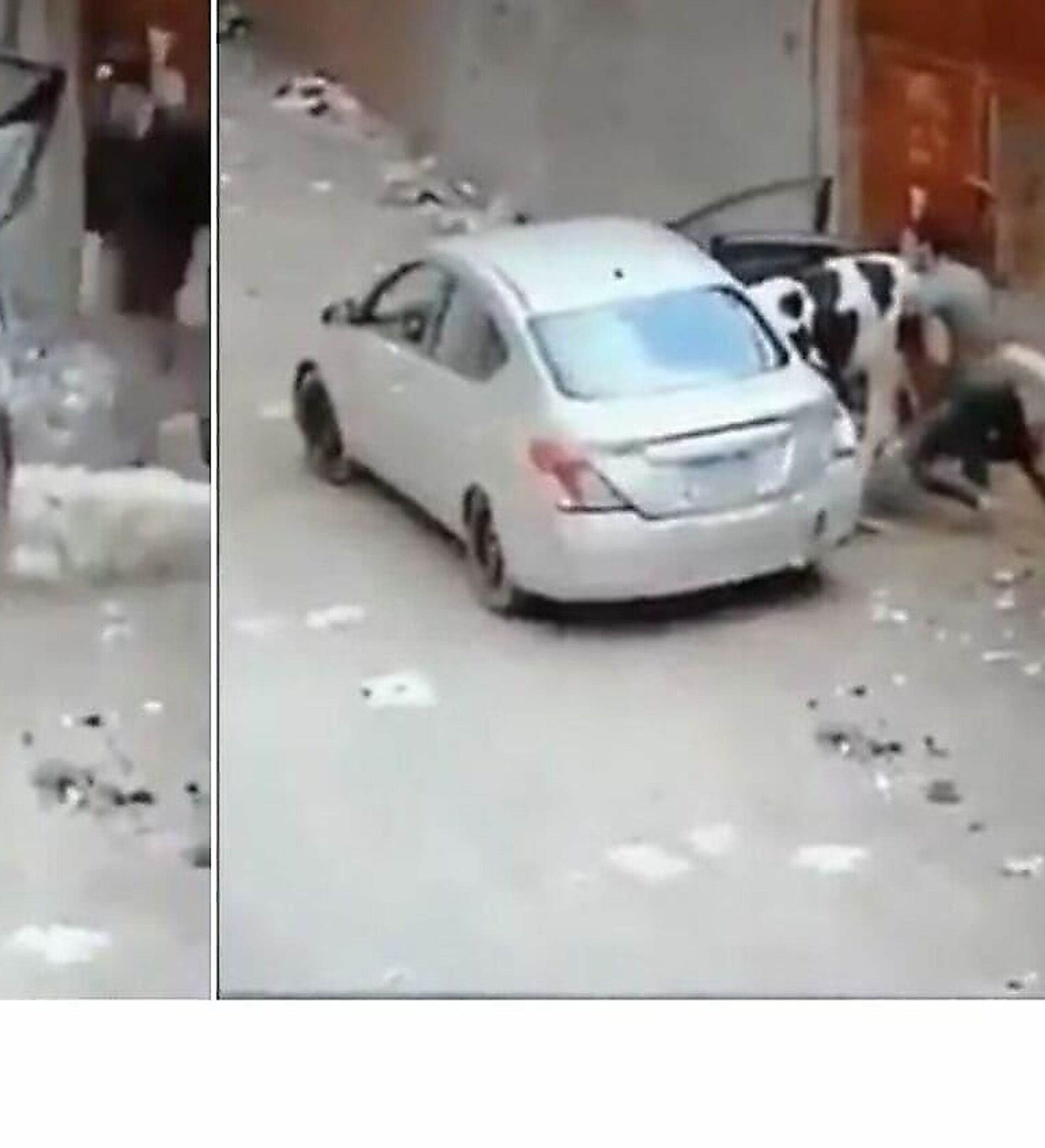 وعلق صاحب الفيديو قائلا إن الشاب الذي يرتدي قميصا رماديا وسروالا أخضر، يشارك بنشاط في سرقة الماشية، وهو لص مشهور في مصر.
