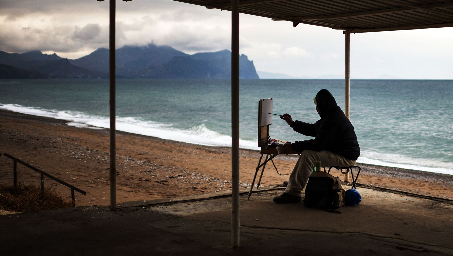 © Sputnik . Alexey Malgavko / الانتقال إلى بنك الصورفنان يرسم على شاطئ سيفاستوبل، القرم، روسيا