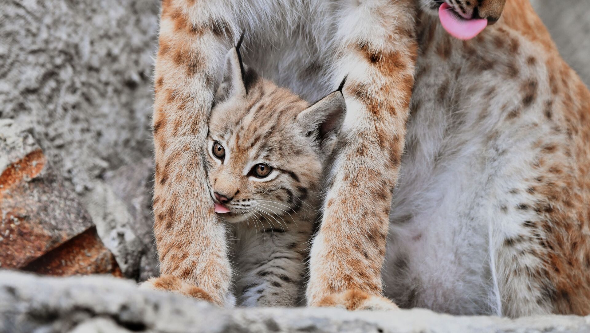 وشق من شرق سيبيريا غايكا مع أحد أشبالها، ولد في 20 مايو/ أيار، في حديقة حيوان موسكو - سبوتنيك عربي