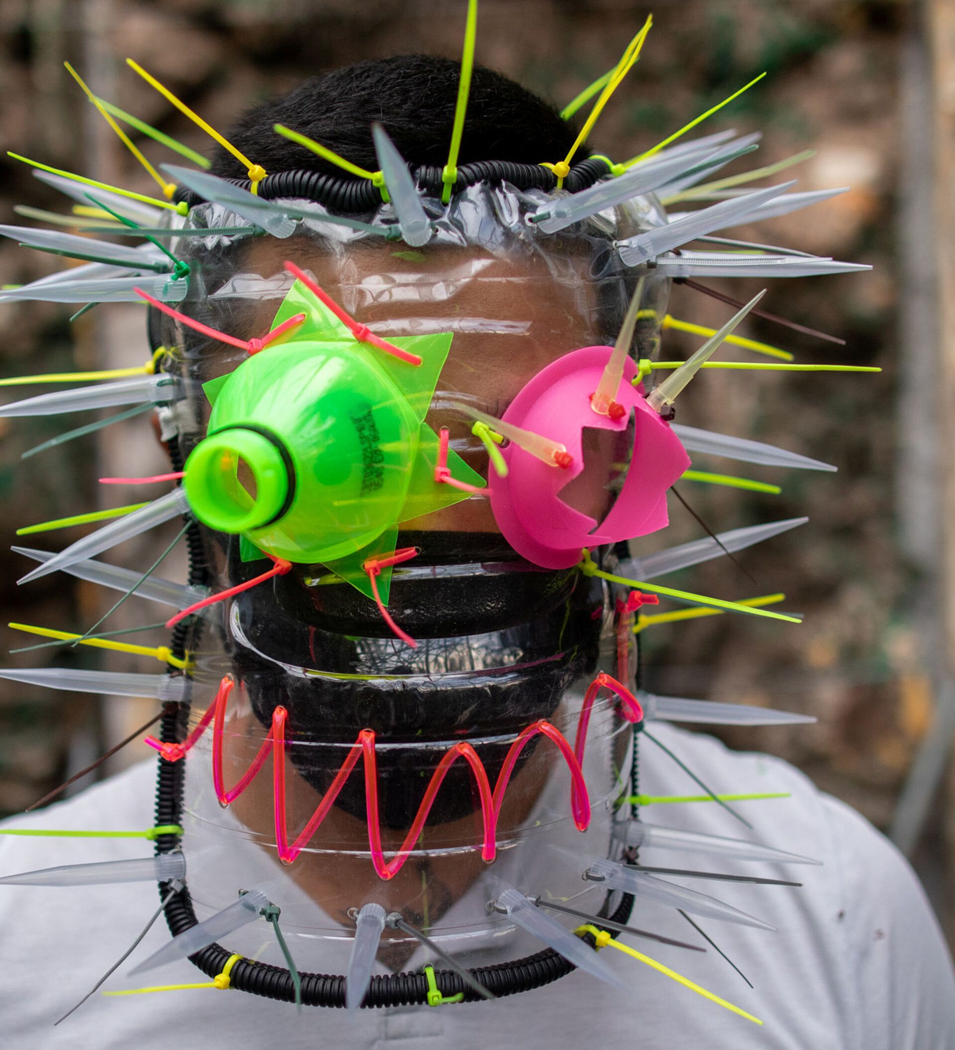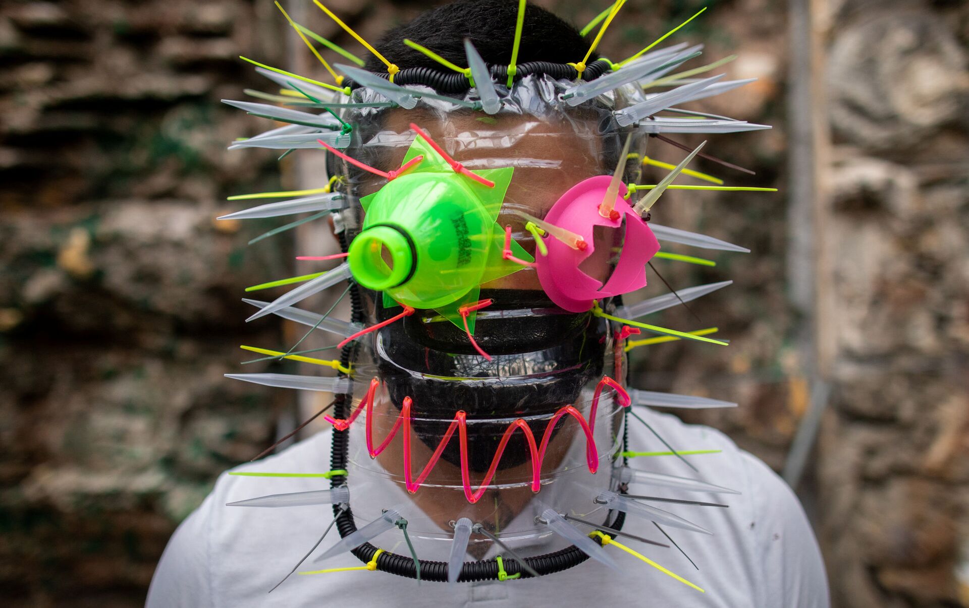 © REUTERS / Eloisa Lopez الفنان الفلبيني لييروي نيو (Leeroy New) يرتدي قناعا من صنع يديه، من مواد معاد تدويرها، في ورشة عمله في مدينة كويزون سيتي، الفلبين 28 مايو/ أيار 2020 الفنان الفلبيني لييروي نيو (Leeroy New) يرتدي قناعا من صنع يديه، من مواد معاد تدويرها، في ورشة عمله في مدينة كويزون سيتي، الفلبين 28 مايو/ أيار 2020