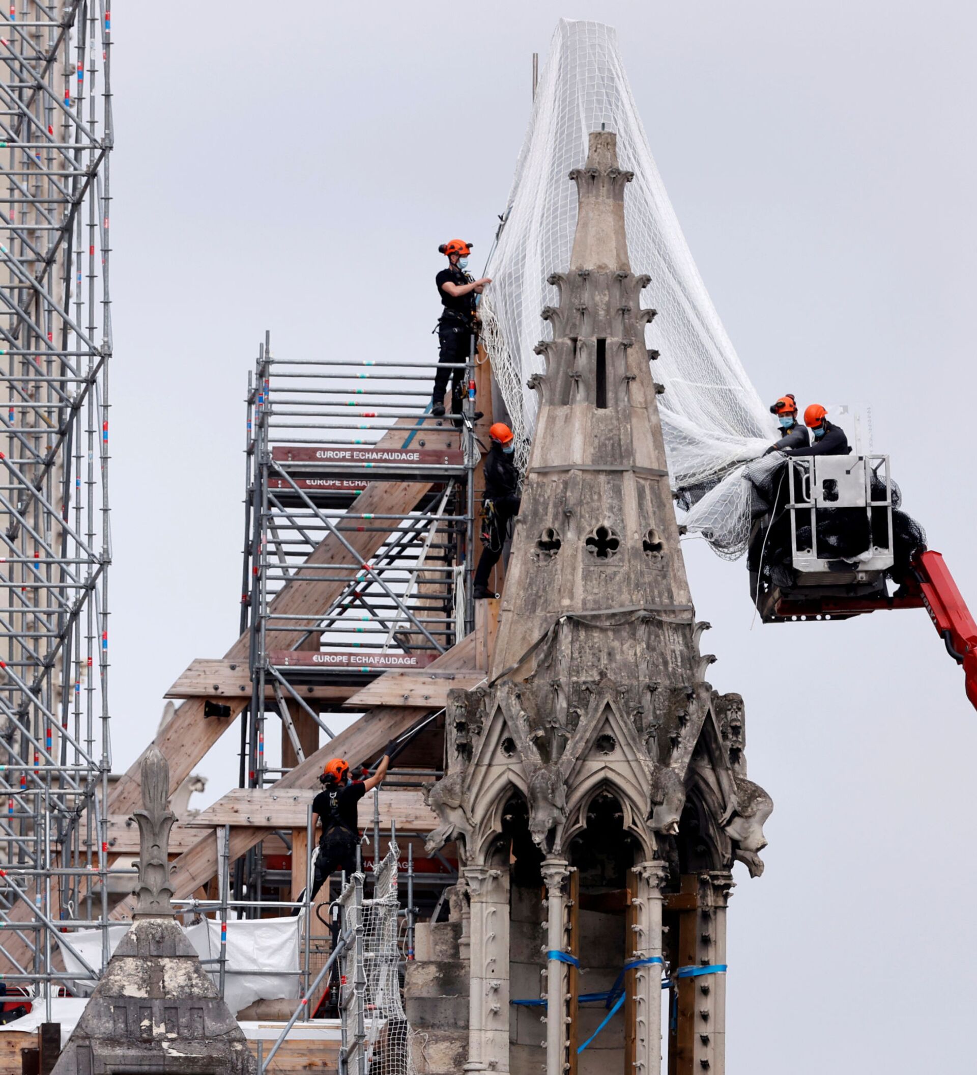 وكان ماكرون قد حسم الجدل والنقاش الوطني الذي دار على مدى عام تقريبا، حول الشكل الذي سيتم عليه إعادة تجديد برج كاتدرائية نوتردام.