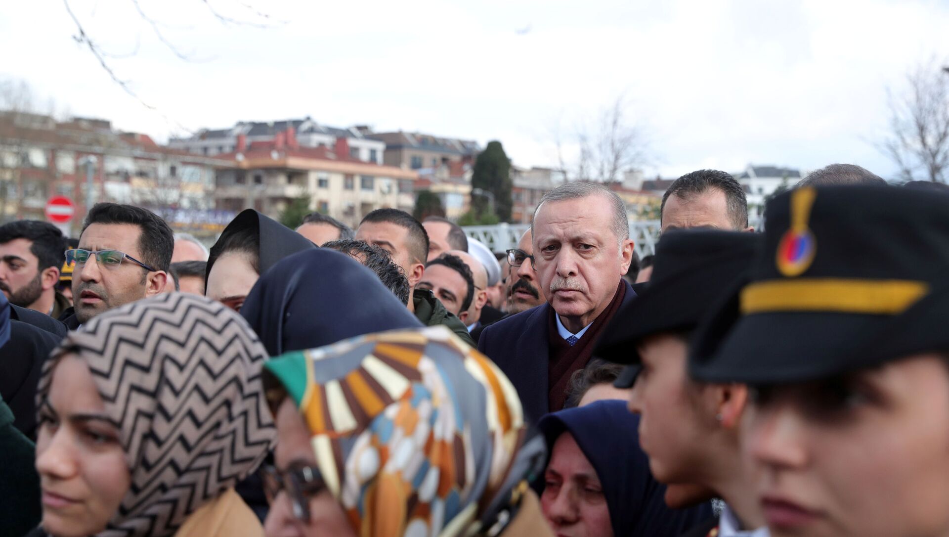 الرئيس التركي رجب طيب أردوغان خلال تشييع جثامين الجنود الأتراك الذين قتلوا في سوريا - سبوتنيك عربي