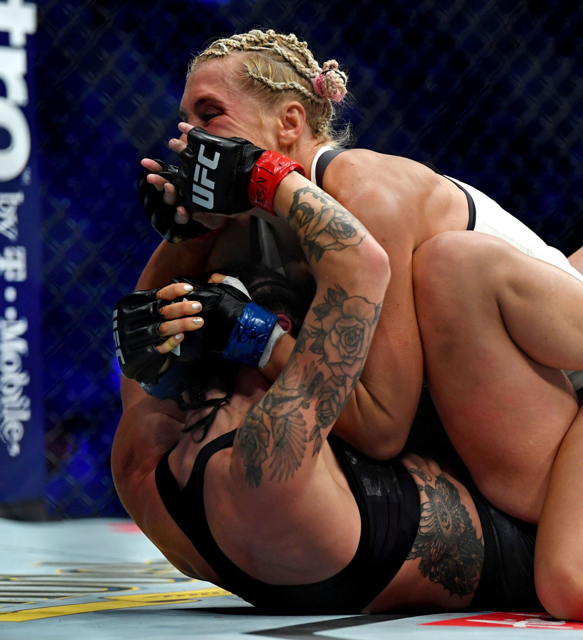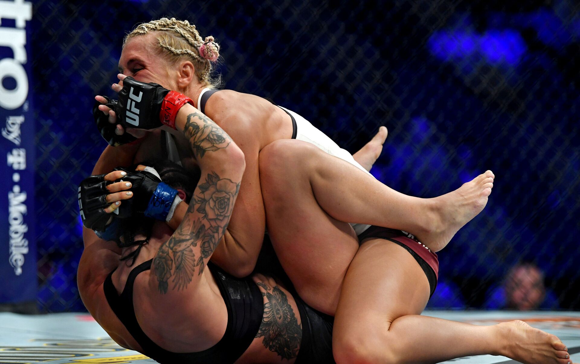 وقبل أن ينهي الحكم النزال، تسببت المقاتلة الروسية صاحبة الـ25 عاما في كسر ذراع منافستها أثناء محاولة التثبيت.