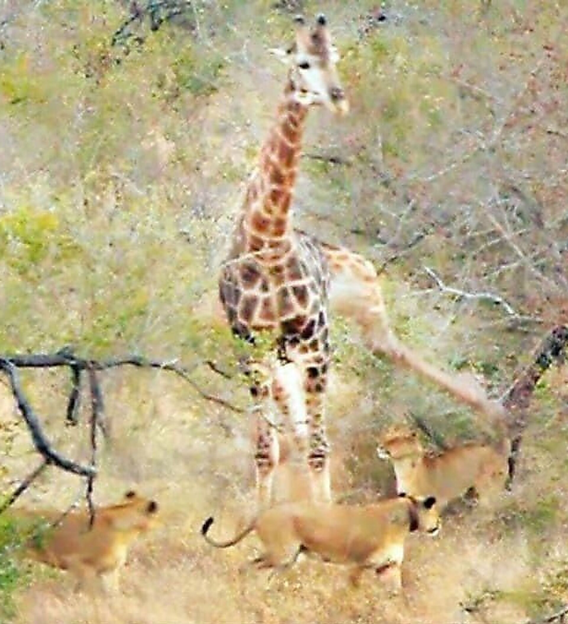 ومع ذلك، يتعرض هؤلاء العمالقة "المرقطون" للهجوم بشكل دوري من قبل الحيوانات المفترسة الأفريقية، (في معظم الأحيان تكون الأسود هي المهاجمة).