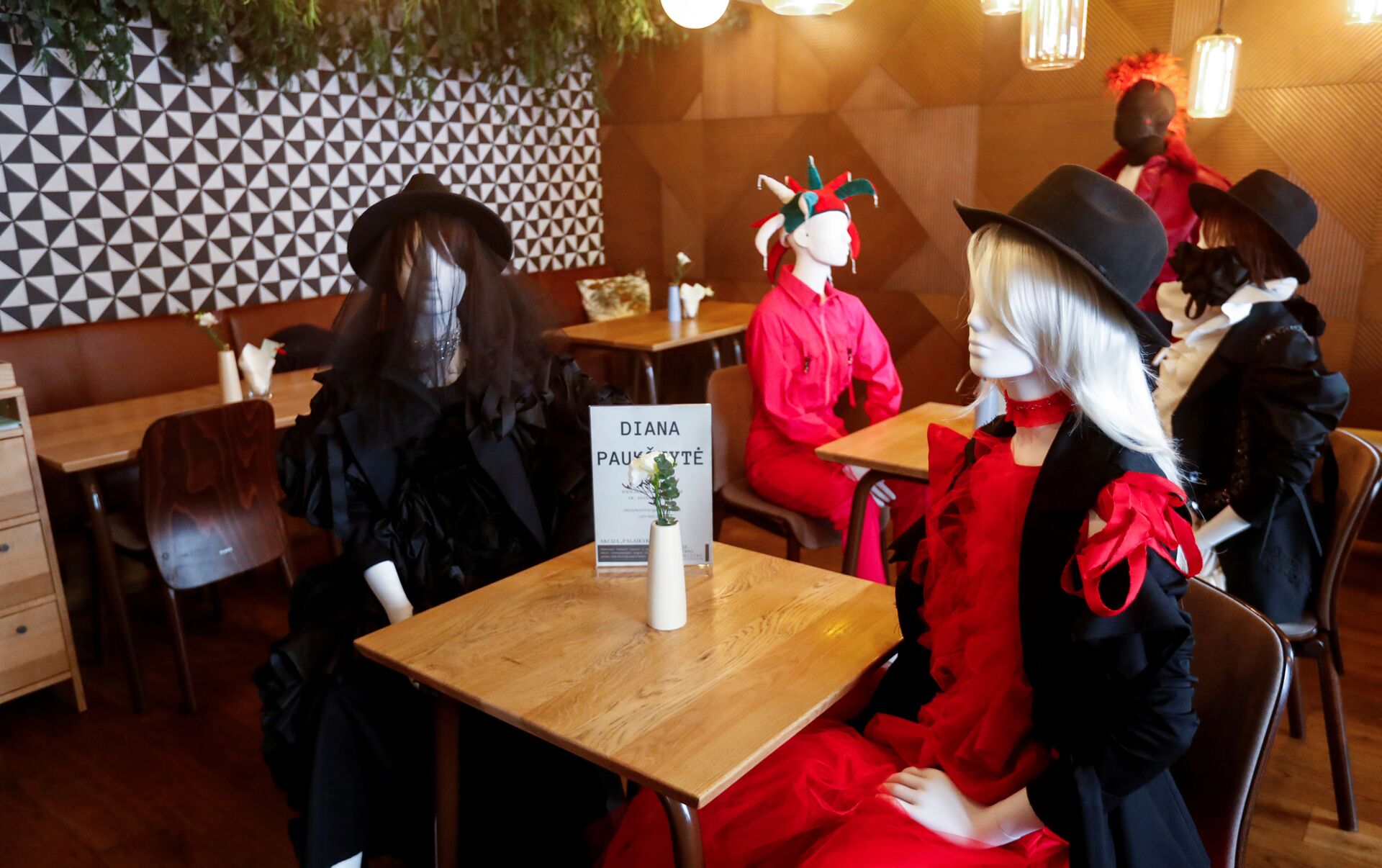 ويستخدم أحد المطاعم في طوكيو دمى على شكل مانيكان، التي تشبه عارضات الأزياء، تجلس على كراسي الطاولات لضمان مسافات الأمان بين الزبائن ومنعهم من الاقتراب من بعضهم البعض، تفاديا لانتشار فيروس كورونا المستجد.