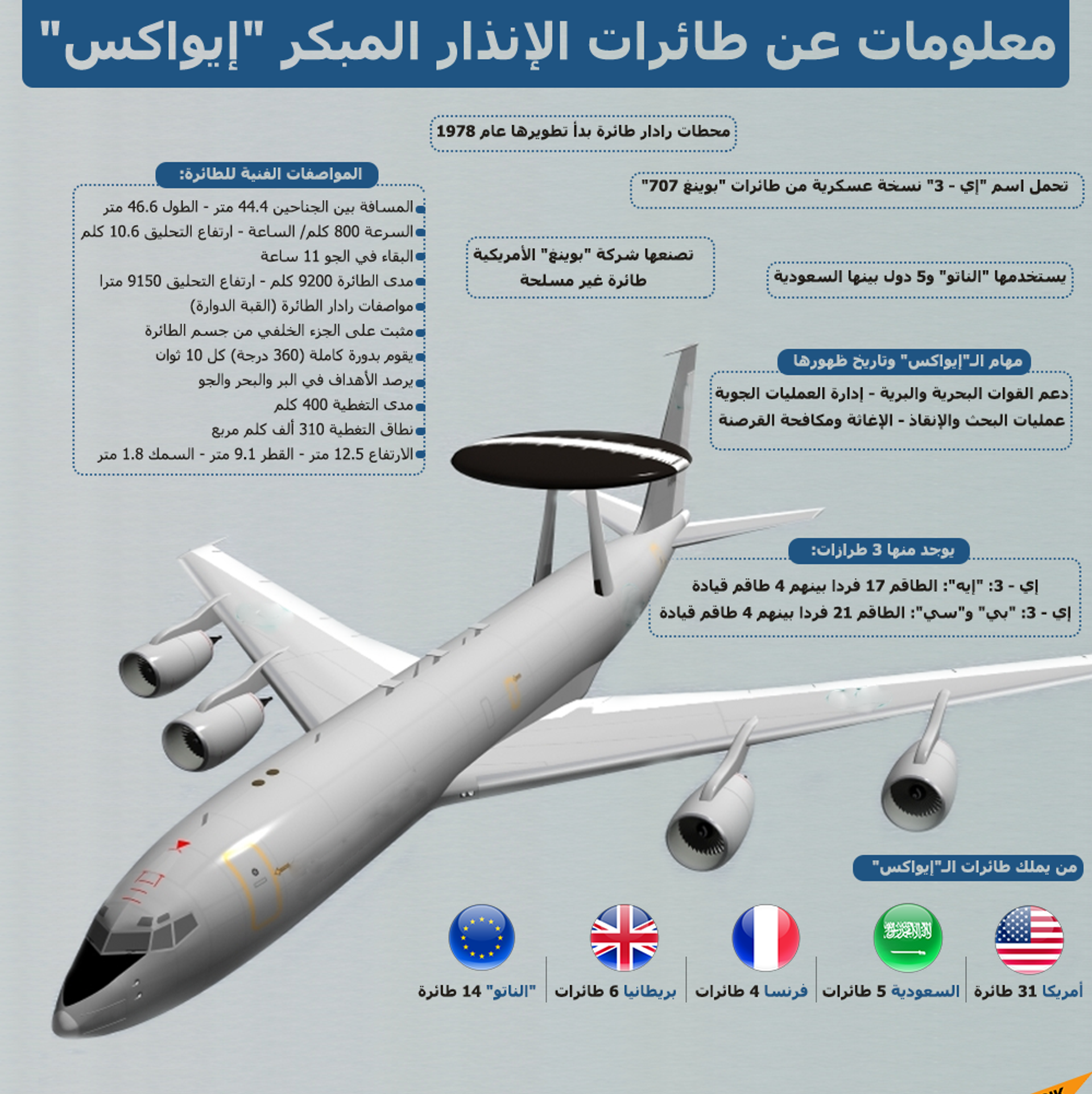 https://sarabic.ae/20200817/21-معلومة-عن-طائرات-الإنذار-المبكر-إيواكس-1046294487.html