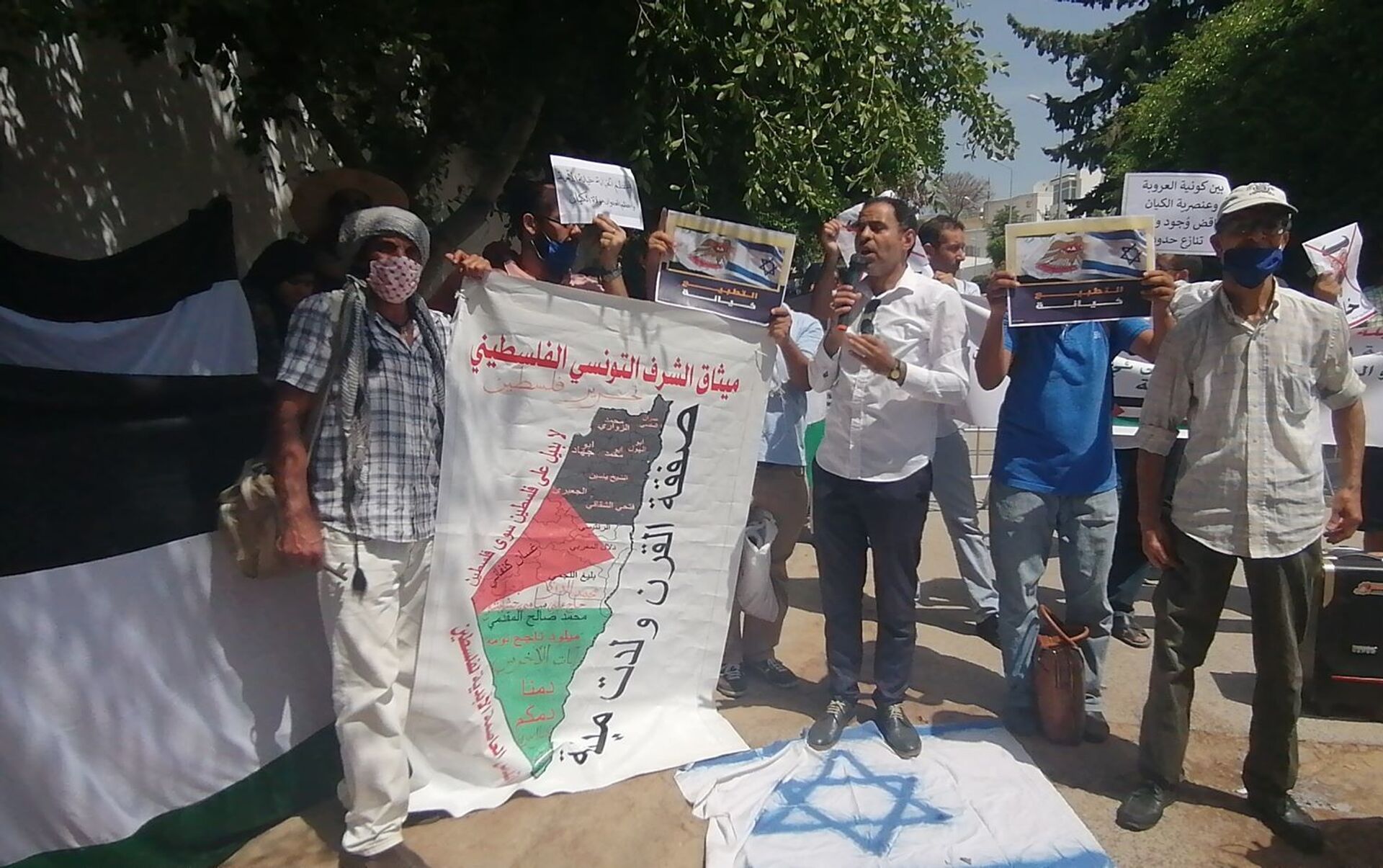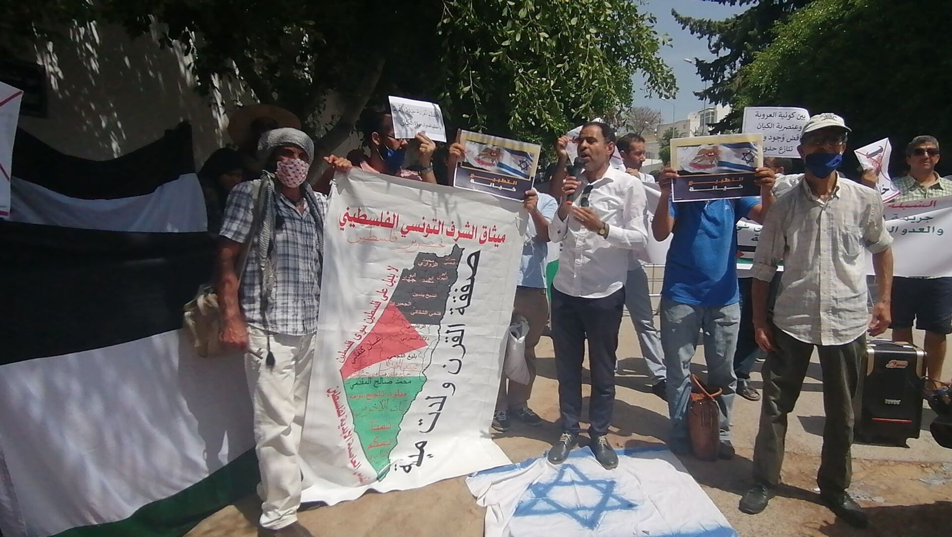 وقال الناشط السياسي والنقابي ورئيس المنتدى التونسي للسيادة الوطنية نفطي حولة في تصريح لـ "سبوتنيك"، إن هذه الوقفة الاحتجاجية تأتي في إطار تعبير الشعب التونسي عن تنديده واستنكاره من "اتفاقية الخزي والعار التي عقدتها دولة الإمارات العربية مع العدو الصهيوني".