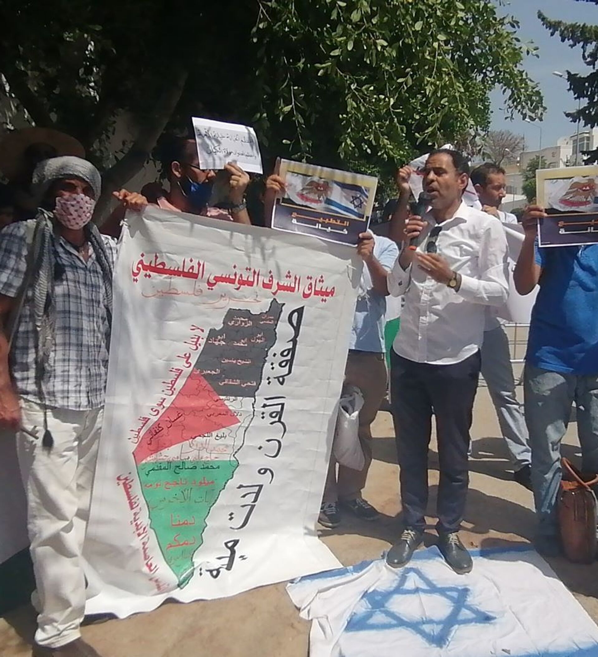 وأكد النقابي أن القضية الفلسطينية ستبقى من القضايا المركزية بالنسبة للشعب التونسي باعتبارها قضية القرن وقضية وجود عربي قومي وبالنظر لكونها قضية انسانية وعادلة، مستدلا على ذلك بمساندة كل من كوبا وفنزويلا للقضية الفلسطينية. وشدد على أن الاتفاق لن يمر وأن مقاومة الشعوب العربية الحرة ستكون السند الوحيد للشعب الفلسطيني.