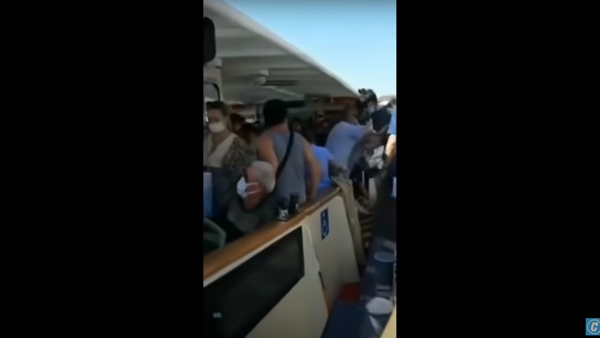 طرد حشد من السياح شخصا لم يلتزم بارتداء الكمامة عند صعوده إلى قارب في مدينة البندقية بإيطاليا.