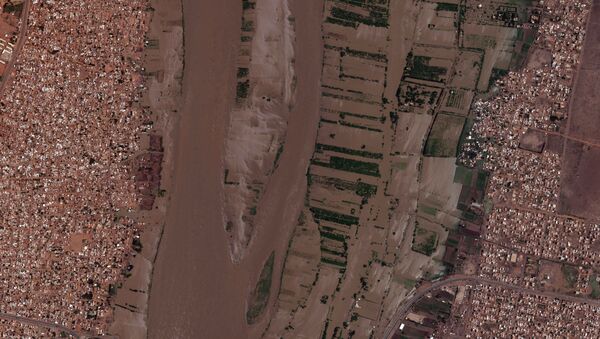 صورة من الأقمار الصناعية وفرتها شركة ماكسار تُظهر جسر الحلفاية والكدرو أثناء فيضانات ضخمة في الخرطوم، السودان  5 سبتمبر 2020 - سبوتنيك عربي
