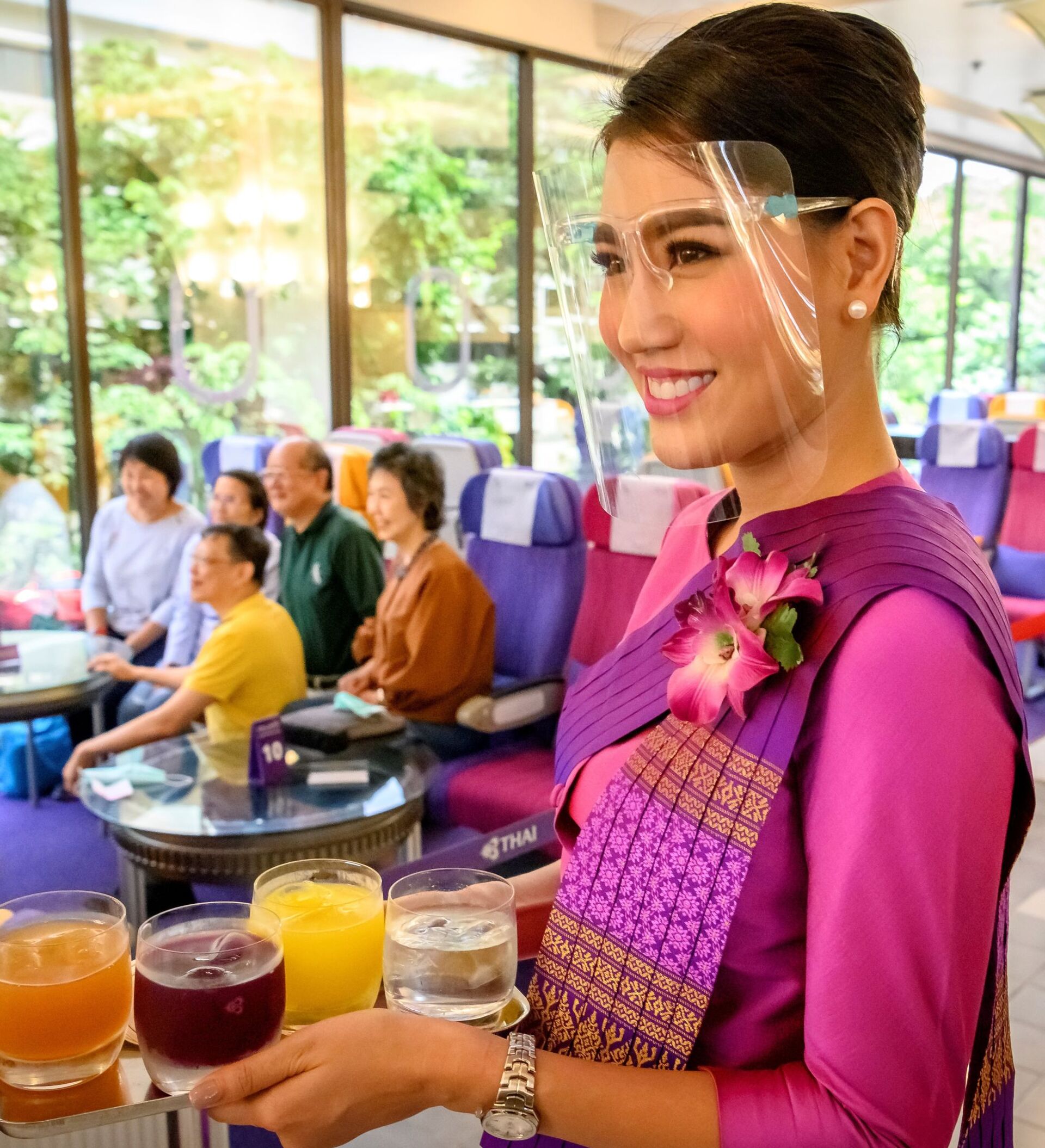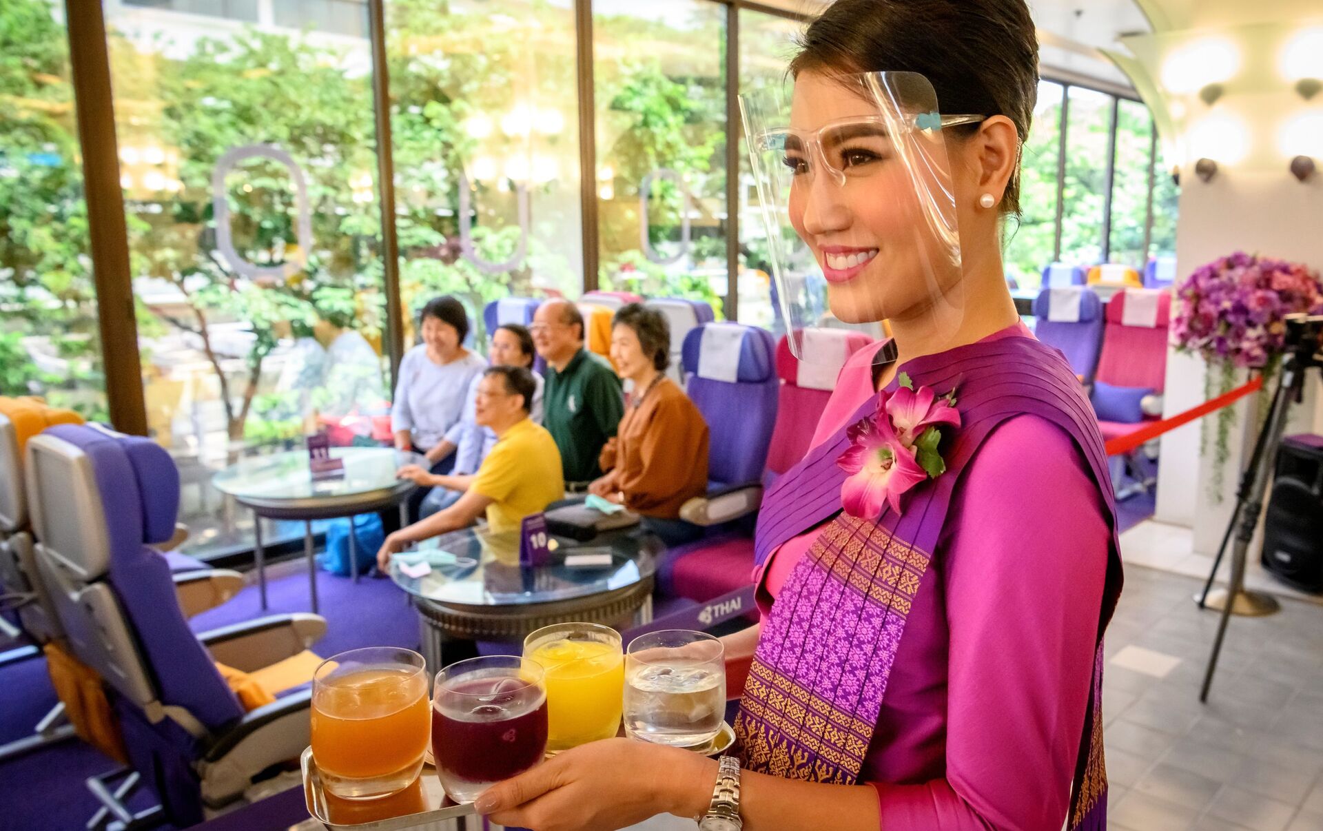 مضيفة طيران الخطوط الجوية التايلاندية أثناء خدمة زوار مطعم "على متن طائرة في بانكوك"، 10 سبتمبر 2020