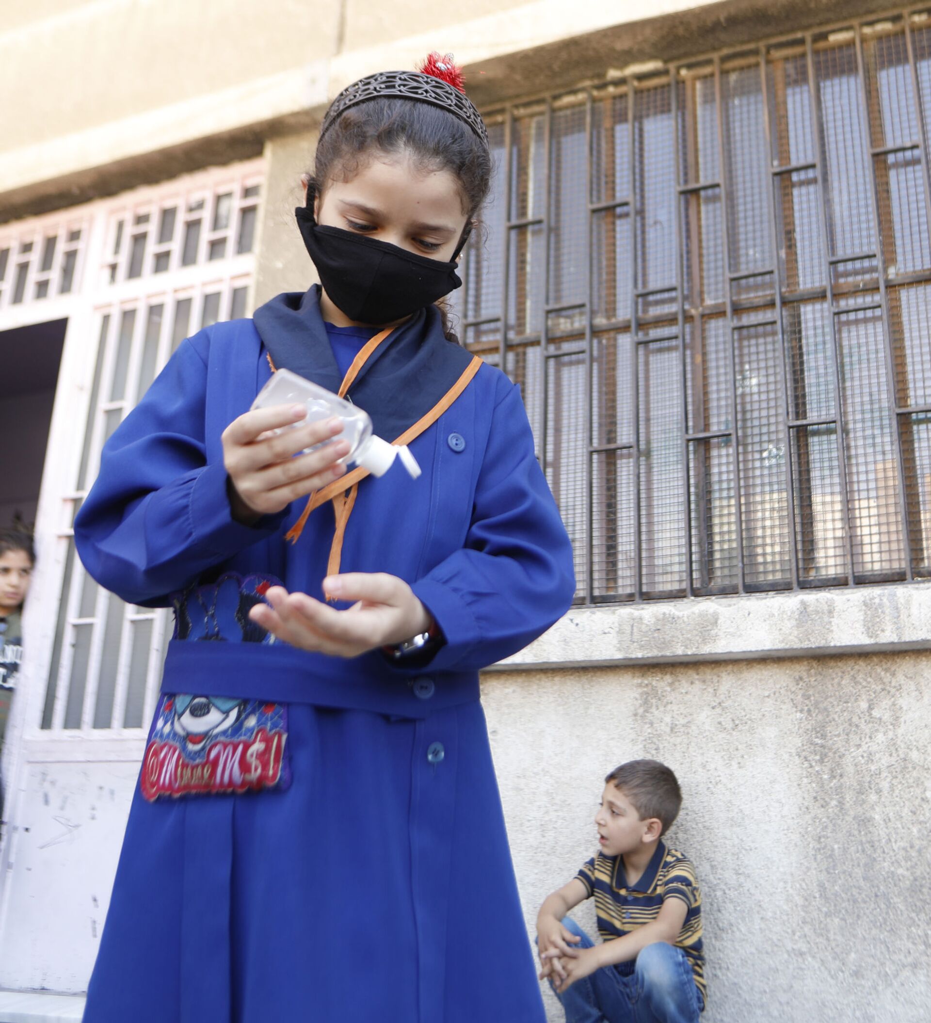 ويؤكد مدير المدرسة بأن الطلاب قدموا إلى المدرسة من دون أي وسائل وقاية من كمامات وغيرها، ويكمل: نحن بدورنا قمنا بتزويد عدد المراحيض والحفاظ على نظافتها بشكل مستمر، ونقوم بقياس حرارة الطلاب صباحا مع تعقيم أيديهم قبل دخولهم إلى المدرسة، والاجتماعات الصباحية أصبحت على درجة جيدة من التباعد.