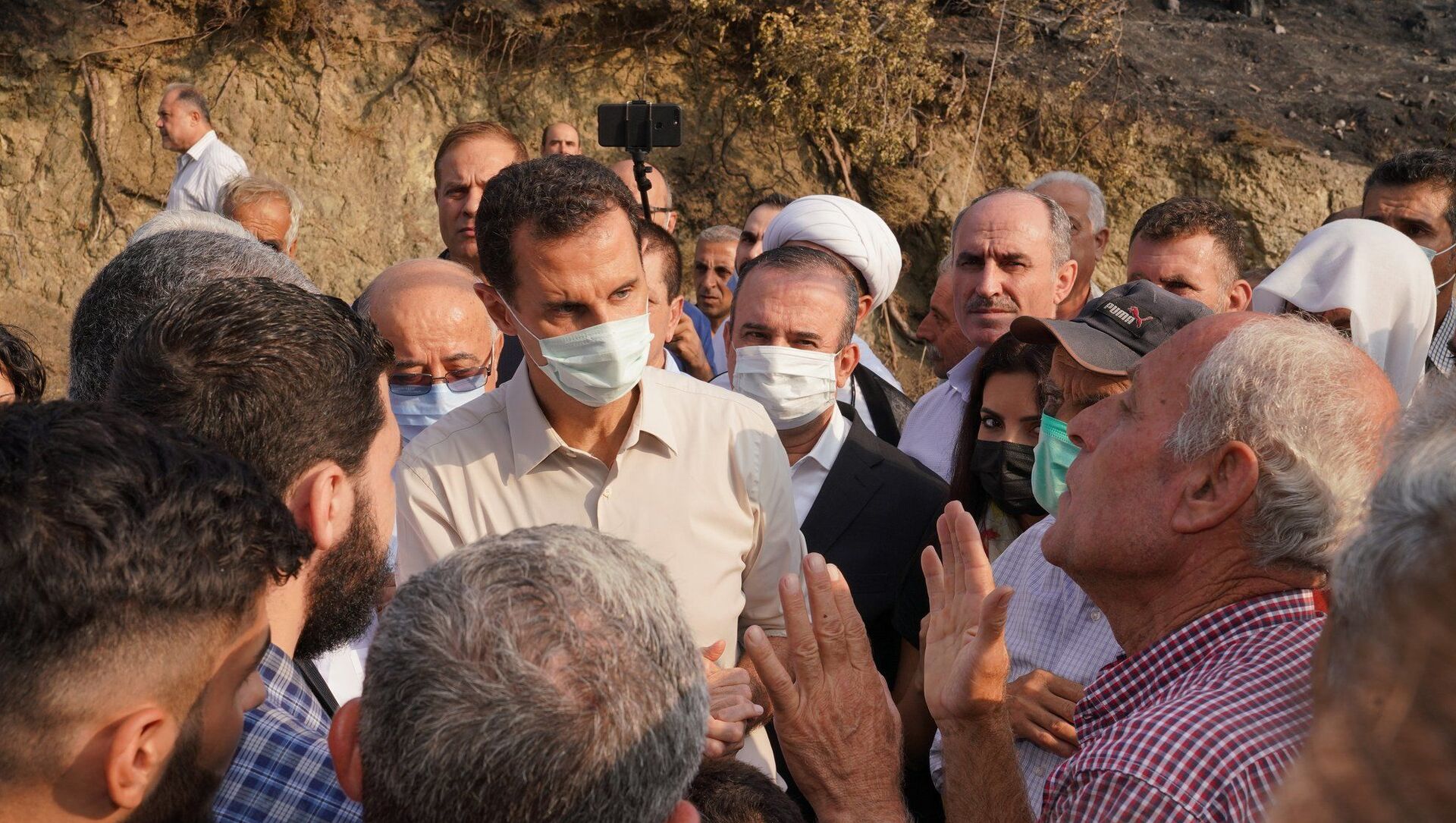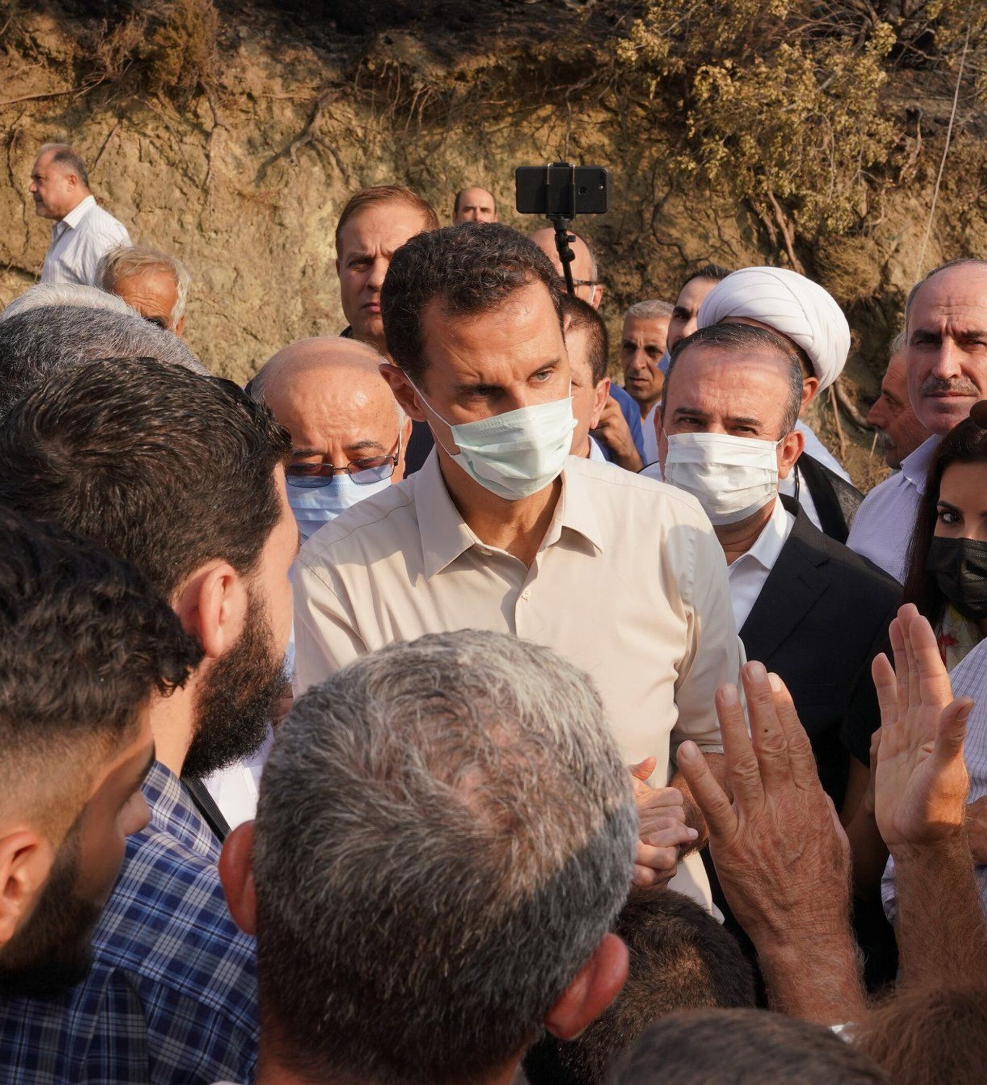 وذكرت وكالة الأنباء السورية "سانا"، أن "الأسد استمع إلى الأهالي في القرية في ريف اللاذقية الشمالي للتعرف إلى أهم أولوياتهم التي تساعدهم في تعزيز عوامل تشبثهم بأرضهم وإعادة زراعتها بأسرع وقت ممكن"، مشيرة إلى أن وزيري الإدارة المحلية والبيئة حسين مخلوف، والزراعة والإصلاح الزراعي حسان قطنا، رافقا الأسد في زيارته.