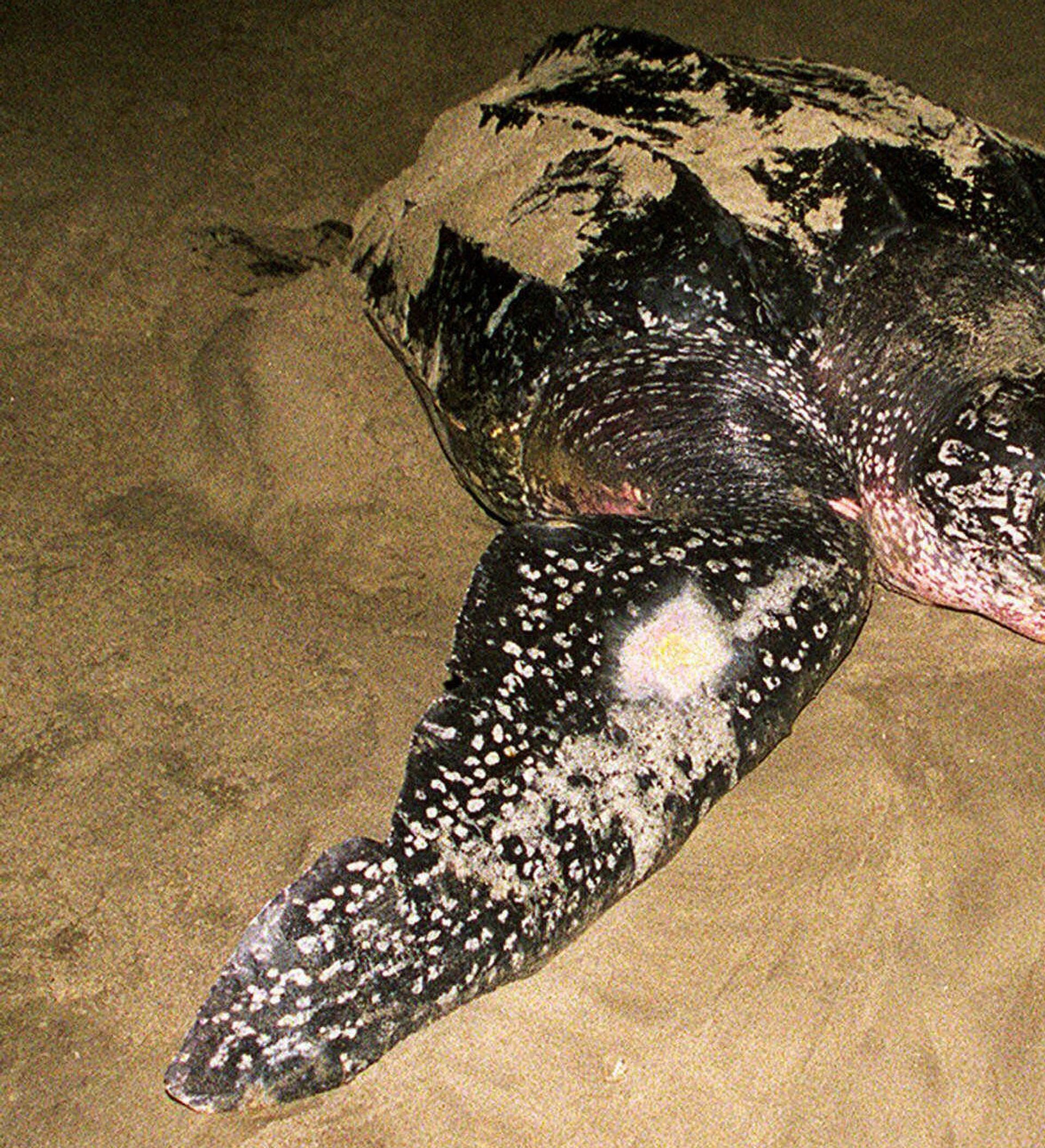 من جانبها نشرت عالمة الأحياء البحرية هولي ريتشموند صورًا للسلحفاة النافقة على حسابها في "انستغرام" وكتبت: "بالقرب مني أكبر سلحفاة بحرية في العالم، سلحفاة جلدية الظهر. كنت أرغب دائمًا في التعرف على هذه الأنواع، ولكن ليس بهذا الشكل".