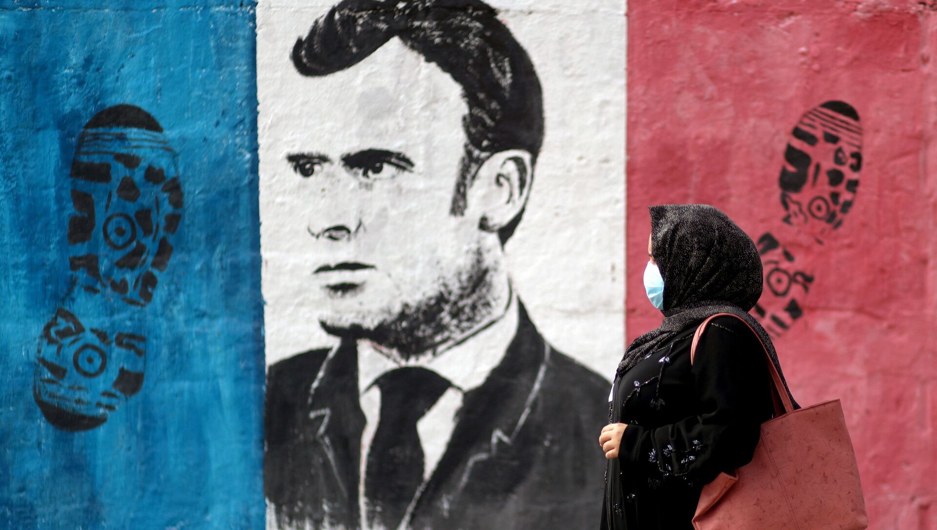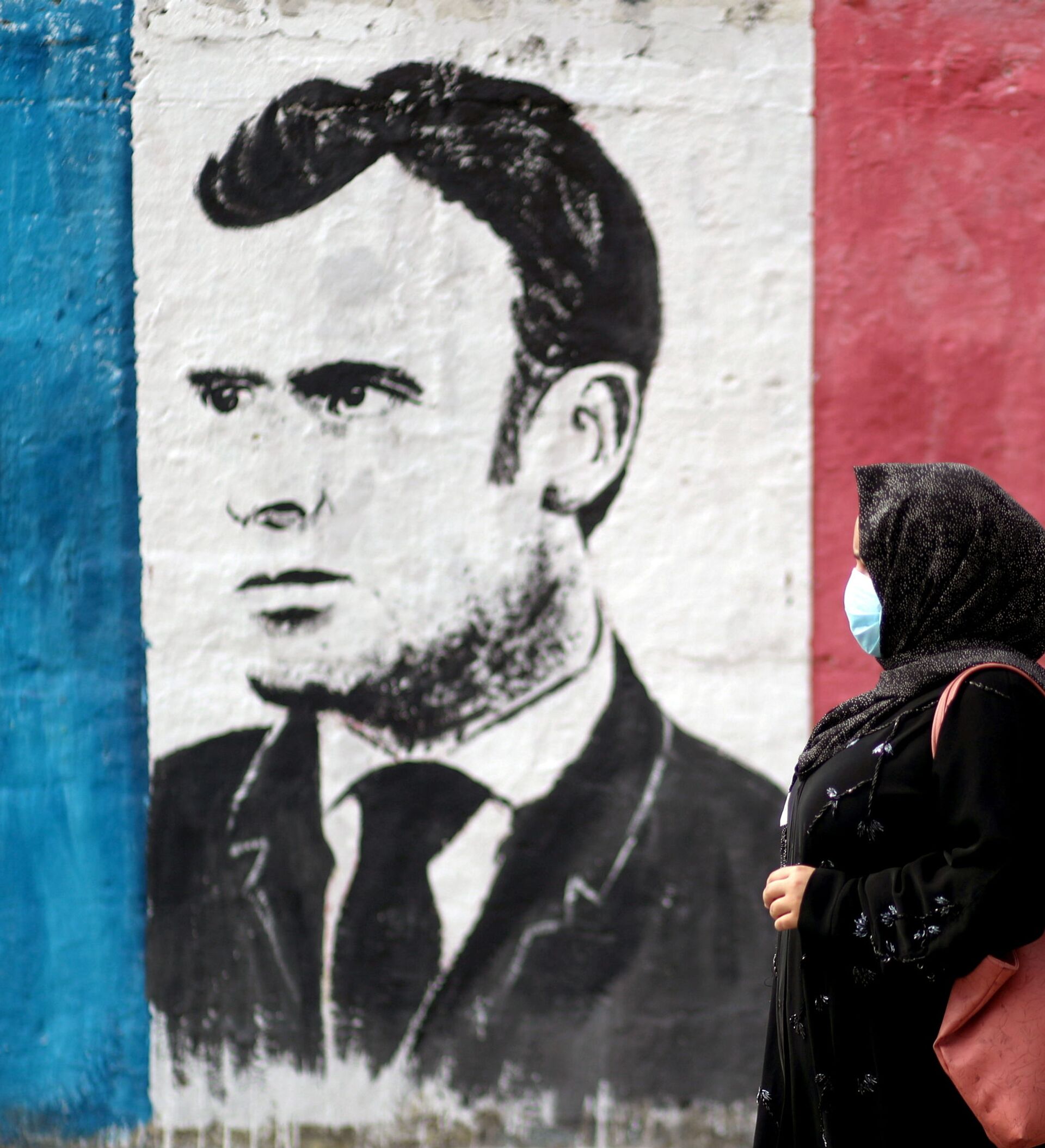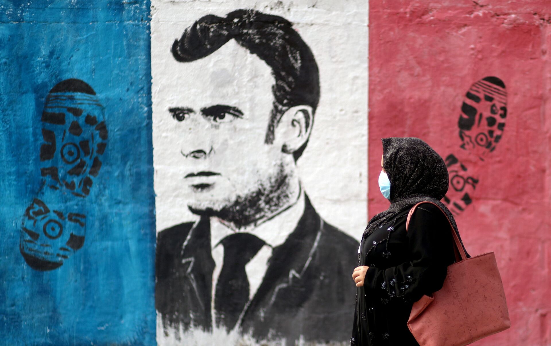 © REUTERS / MOHAMMED SALEMحملة جماهرية احتجاجية ضد تصريحات الرئيس الفرنسي إيمانويل ماكرون حول رسومات الكاريكاتير المسيئة للرسول محمد (ص) في غزة، قطاع غزة 28 أكتوبر 2020