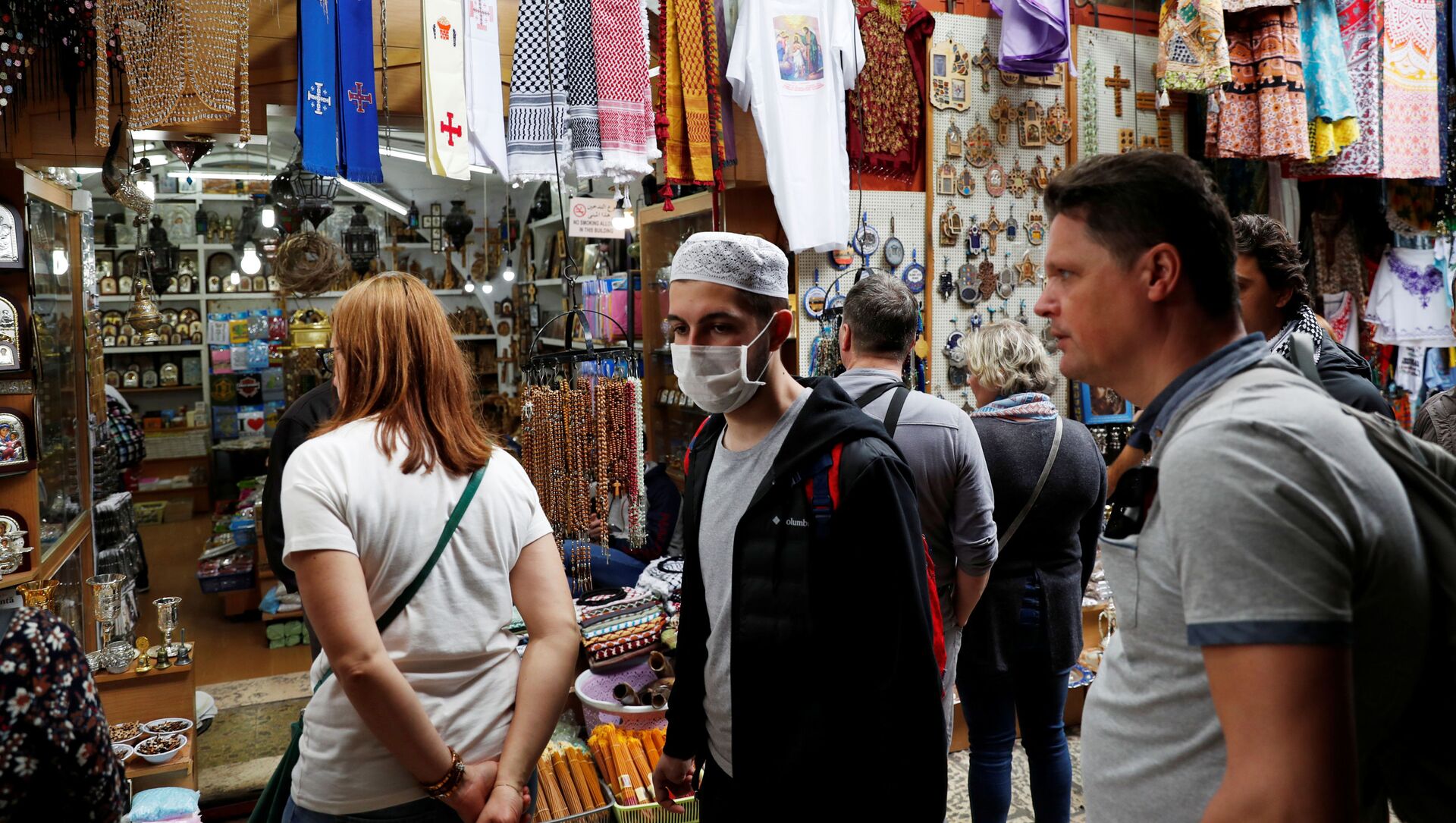 شخص يرتدي كمامة واقية من فيروس كروونا (كوفيد-19) بينما يسير في مدينة القدس - سبوتنيك عربي