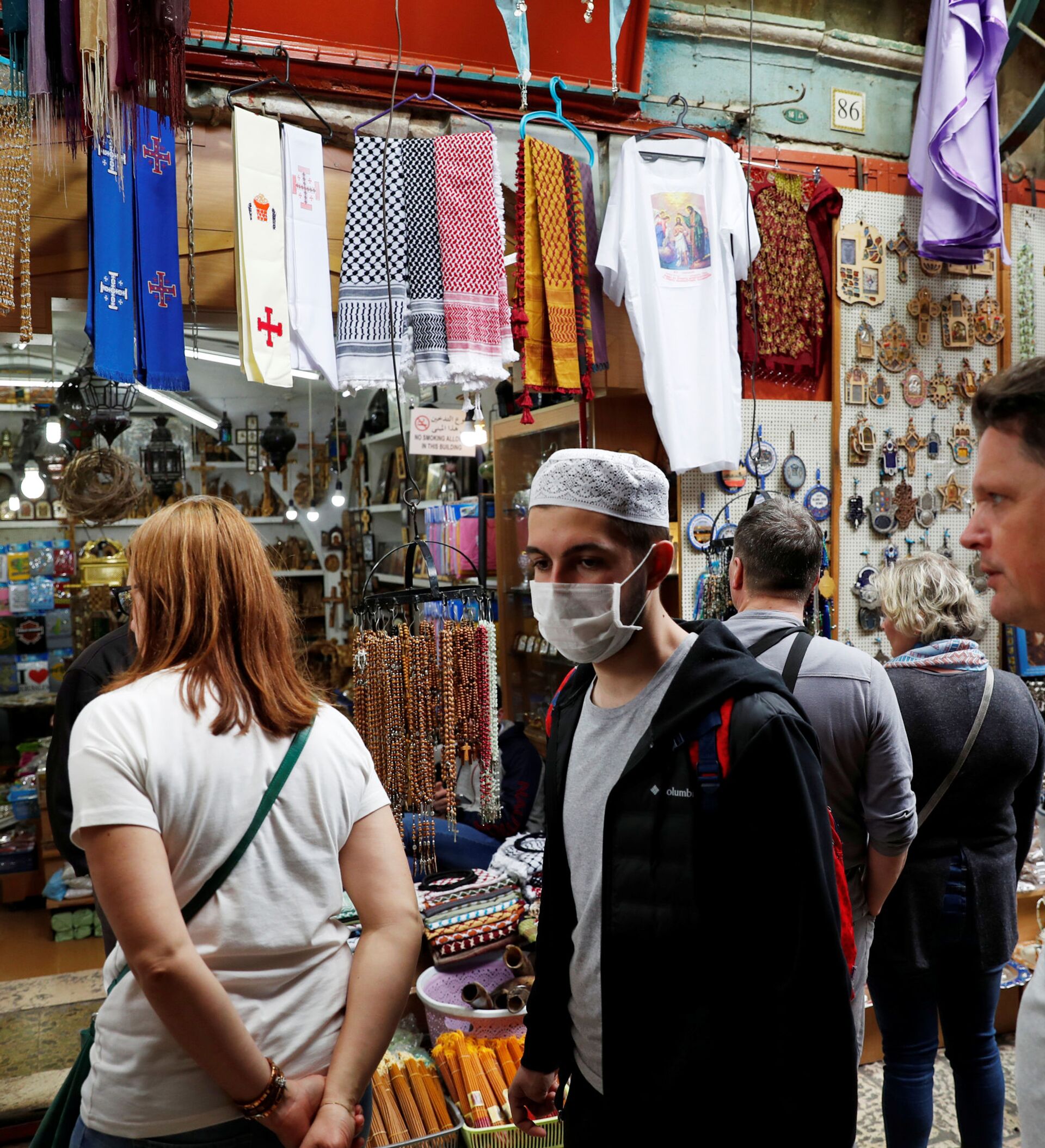 © REUTERS / RONEN ZVULUNشخص يرتدي كمامة واقية من فيروس كروونا (كوفيد-19) بينما يسير في مدينة القدس