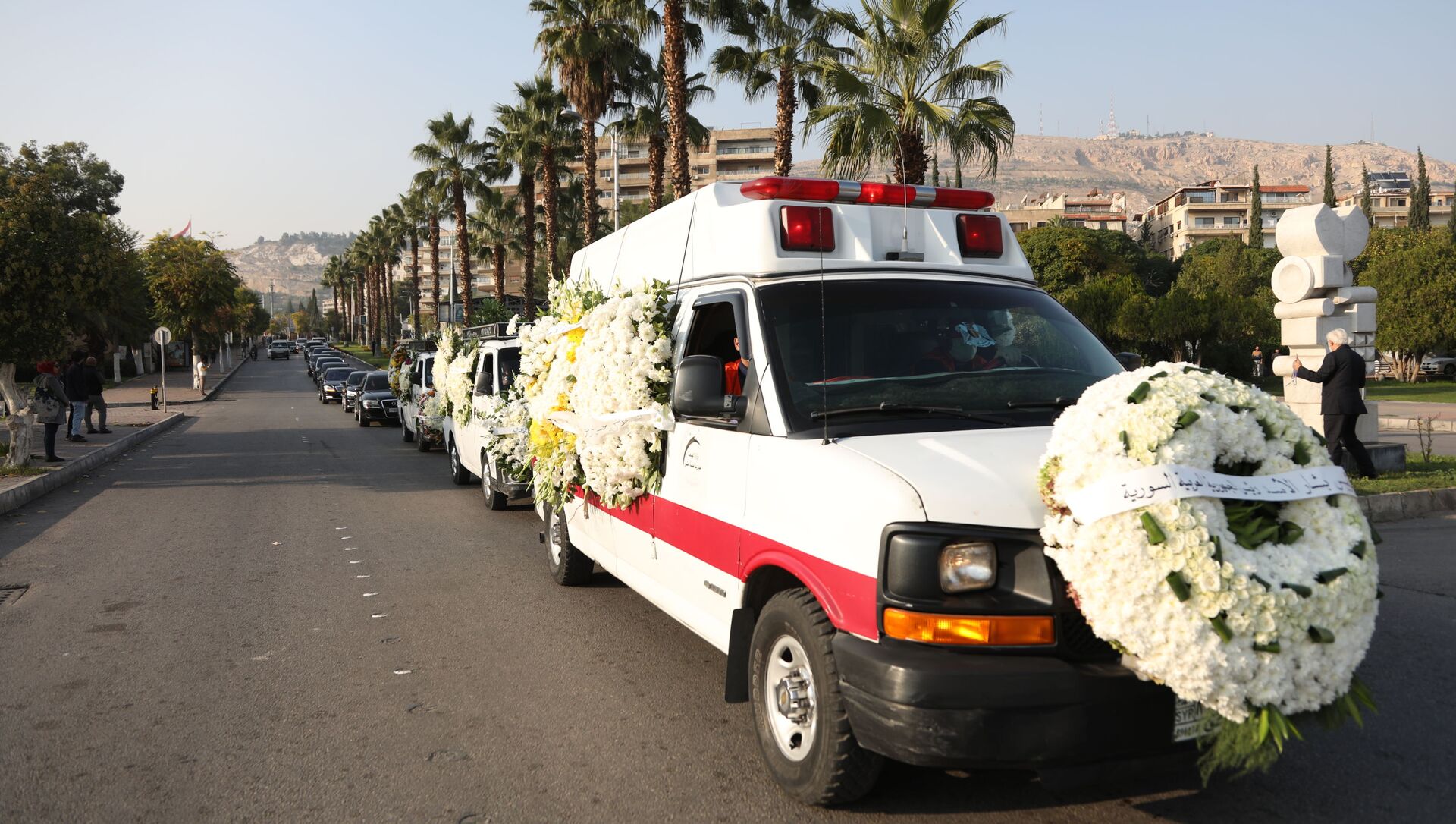 بحضور شعبي ورسمي واسع ومشاركة شخصيات سياسية وعسكرية وحكومية سورية، إضافة إلى السفير الروسي في دمشق ألكسندر يفيموف وعدد من ممثلي البعثات الدبلوماسية العربية والأجنبية، انطلق موكب التشييع من مشفى الشامي وسط العاصمة دمشق، حيث صلي على الفقيد في جامع سعد بن معاذ، ثم وري الثرى في مقبرة المزة.