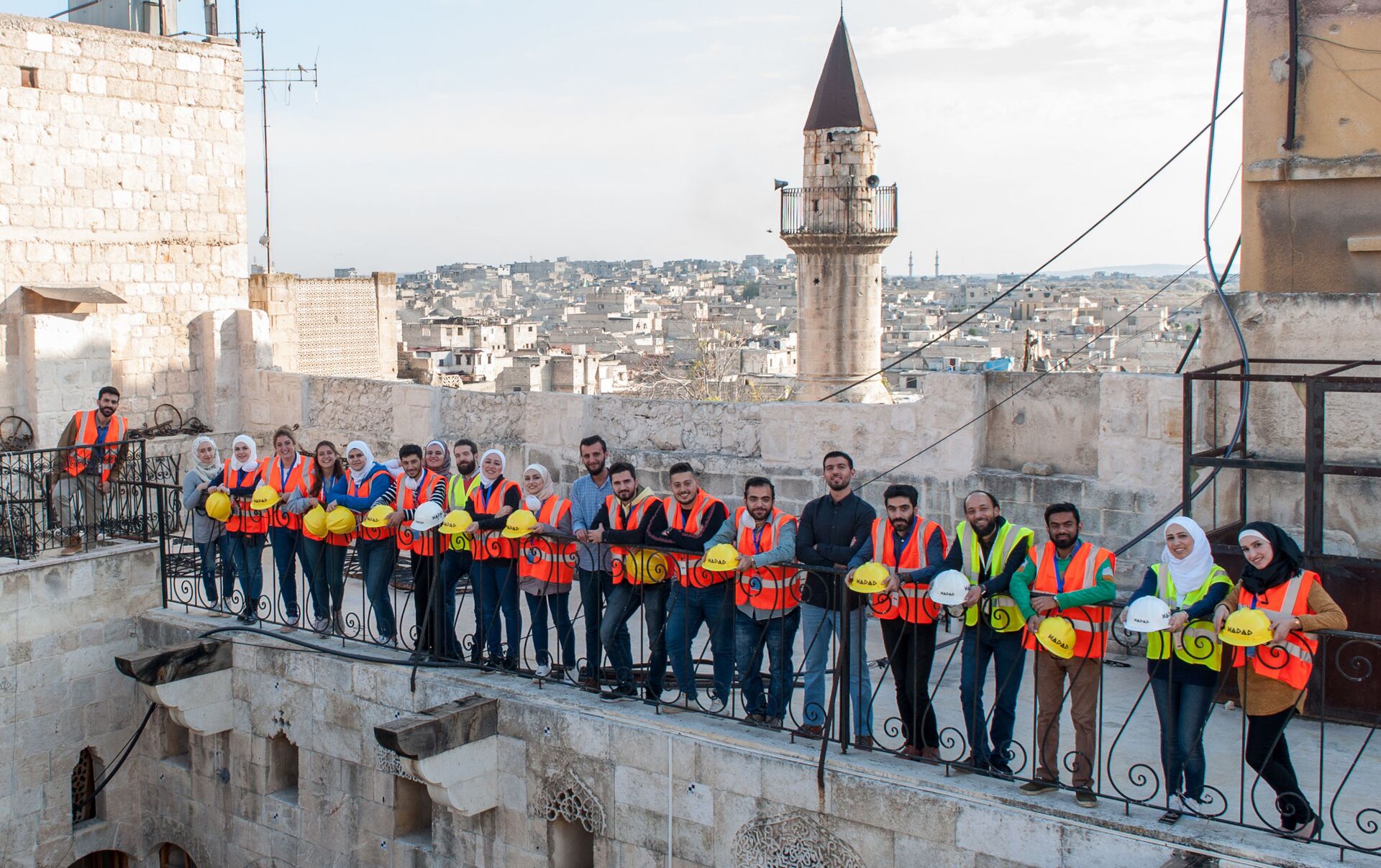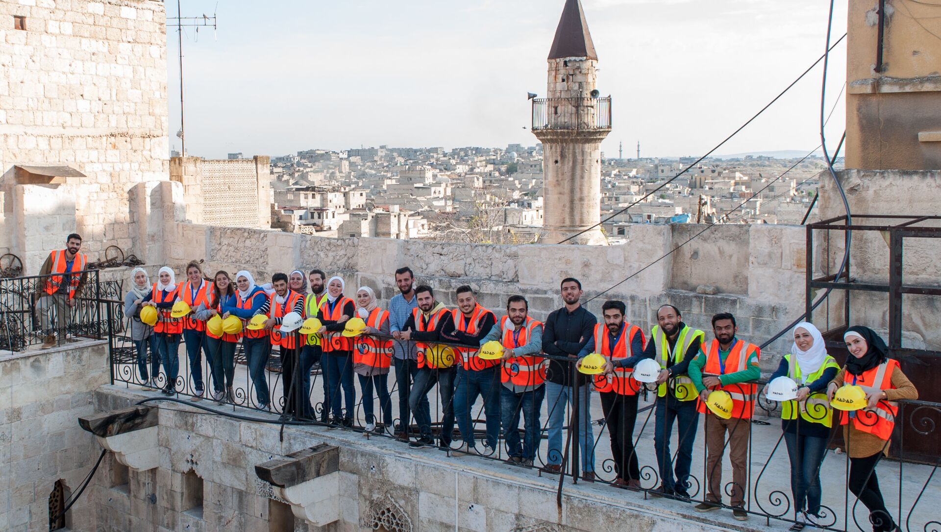 هنا وأمام أطلال ركام الحرب الطويلة على سوريا، اختار 16 مهندساً ومهندسة من اختصاصات (العمارة والطبوغرافية والمدني) أن يتحولوا إلى مسعفين لأكثر الحجارة في العالم قرباً لقلوبهم: حلب القديمة، ورشات العمل التدريبية الممتدة لأسابيع التي وصلت الليل بالنهار، يتساقط معها التعب أمام هدف واحد: عودة الحجارة إلى سابق عهدها ونبضها.