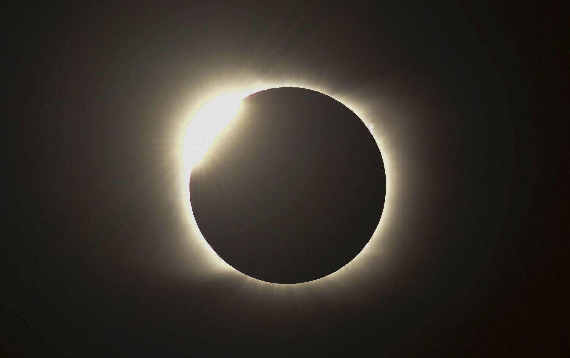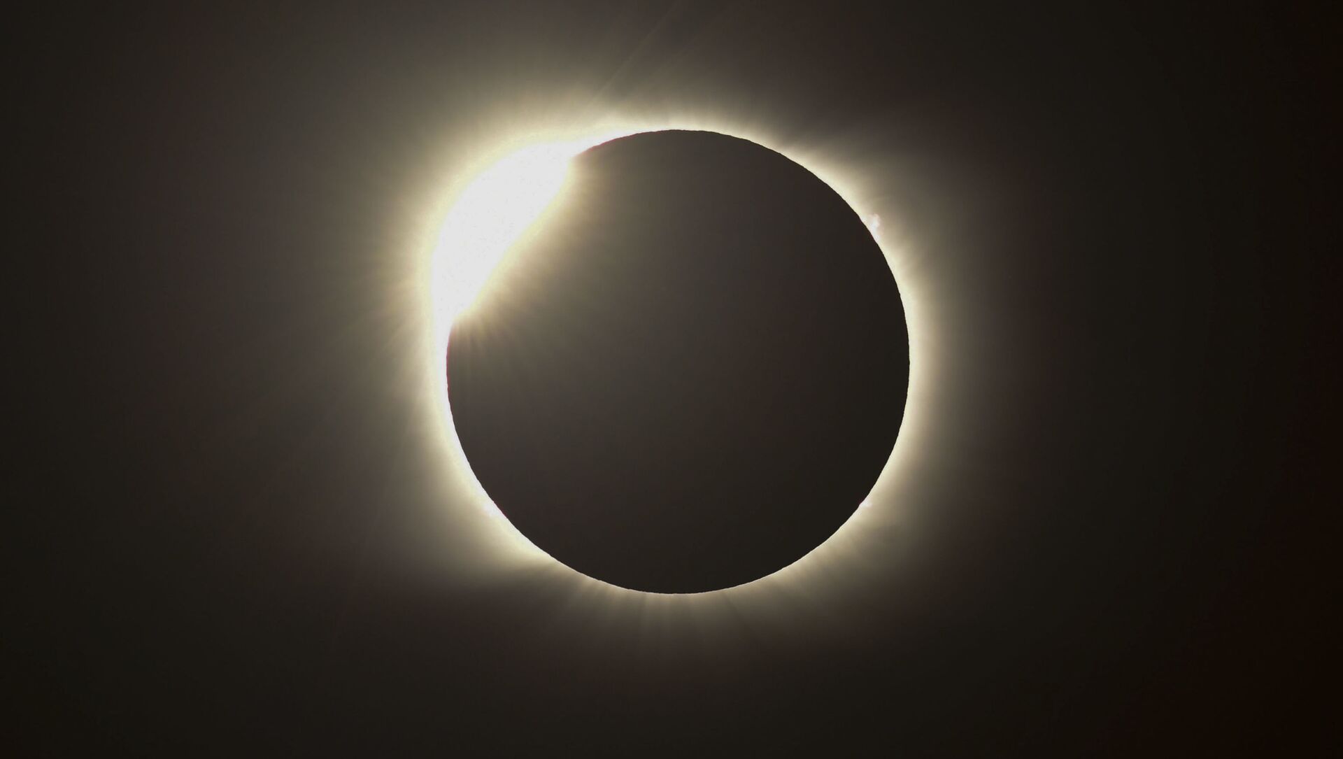 تأثير الحلقة الماسية خلال الكسوف الكلي للشمس من بيدرا ديل أغيلا، مقاطعة نيوكوين، الأرجنتين في 14 ديسمبر 2020
