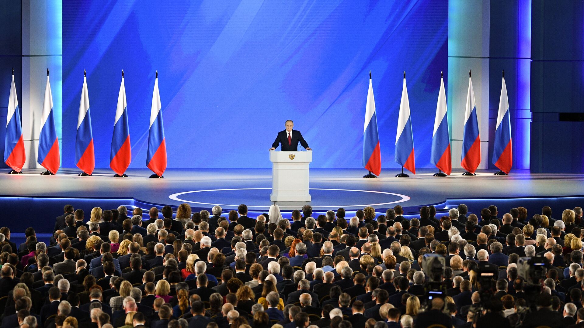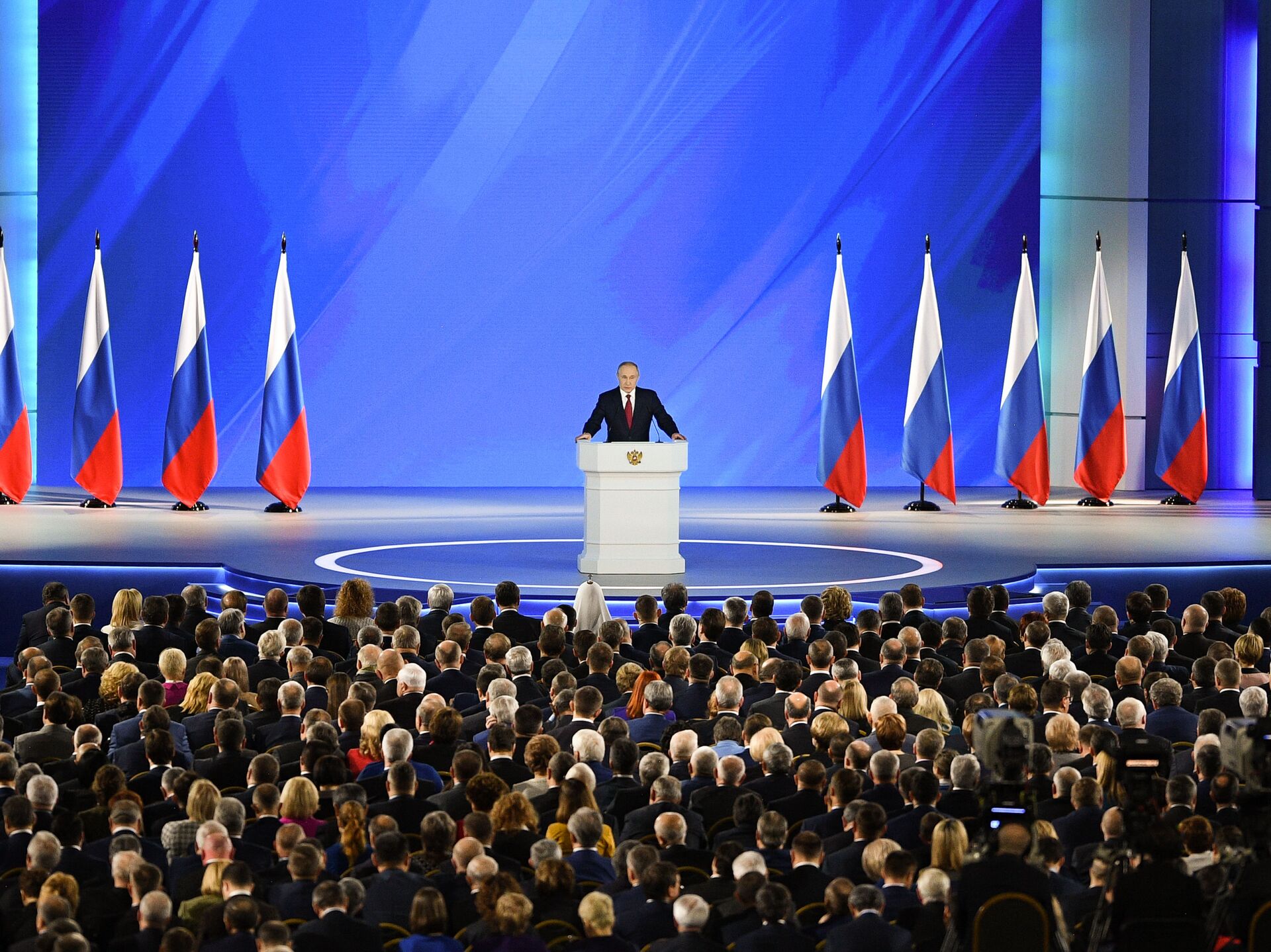 كلمة الرئيس الروسي فلاديمير بوتين أمام الجمعية الفيدرالية، بما في ذلك نواب مجلس الدوما، الغرفة السفلى بالبرلمان، وأعضاء مجلس الاتحاد الروسي، الغرفة العليا للبرلمان، في موسكو، روسيا، 15 يناير 2020 - سبوتنيك عربي