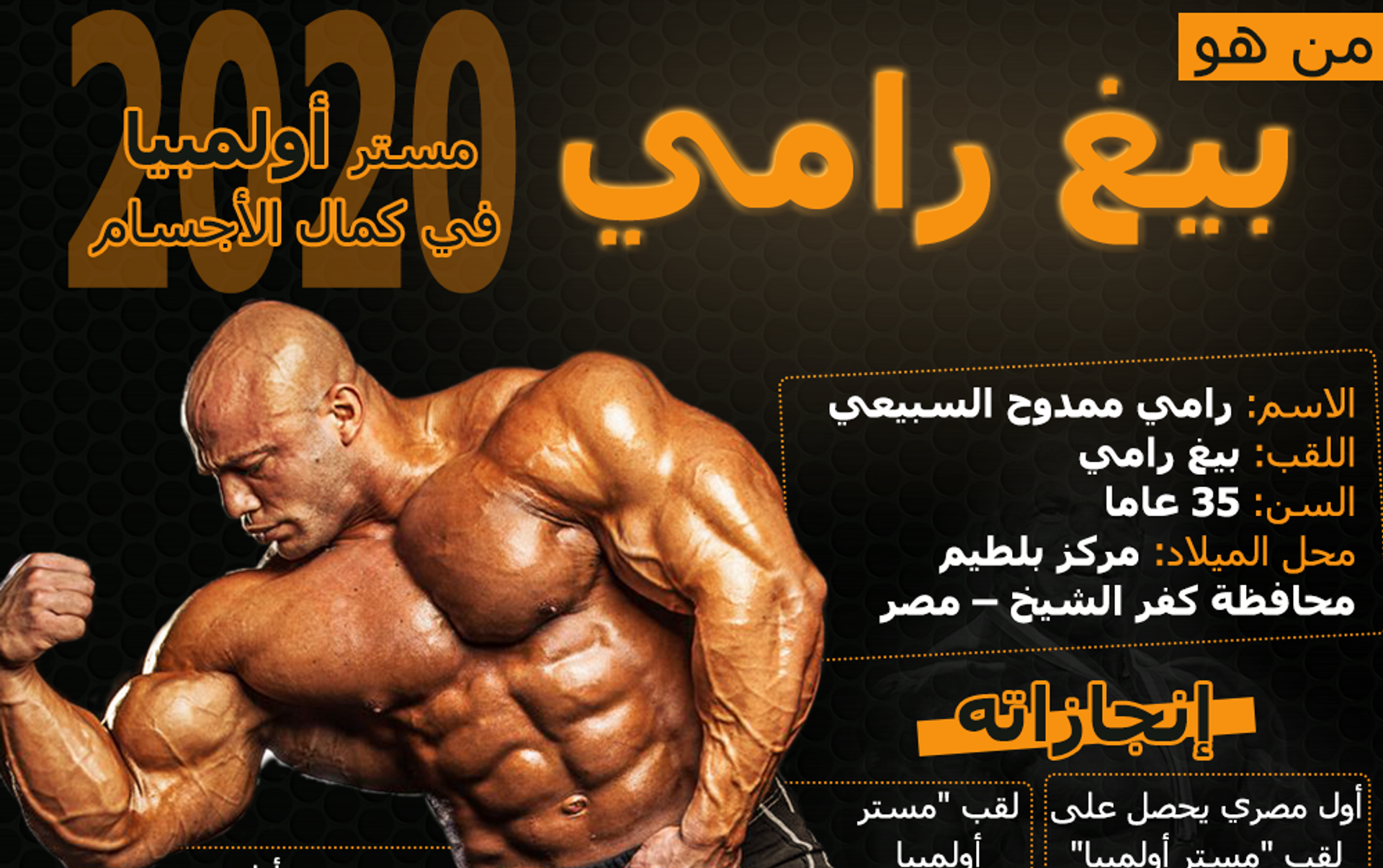 توج لاعب كمال الأجسام المصري، رامي السبيعي، الملقب بـ"بيغ رامي" بلقب بطولة "مستر أولمبيا 2020"، التي تعتبر أكبر وأشهر بطولات كمال الأجسام في العالم. وتفوق البطل المصري لكمال الأجسام على براندون كاري، الفائز بنفس اللقب العام الماضي 2019، والذي حل في المركز الثاني. كما احتل فيل هيث، والذي فاز بسبعة ألقاب "مستر أولمبيا"، في المركز الثالث.