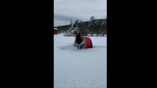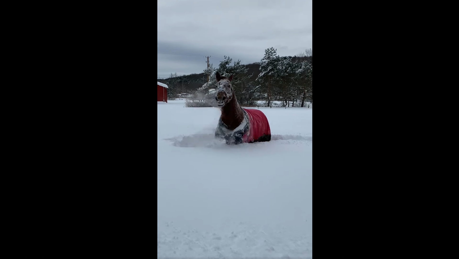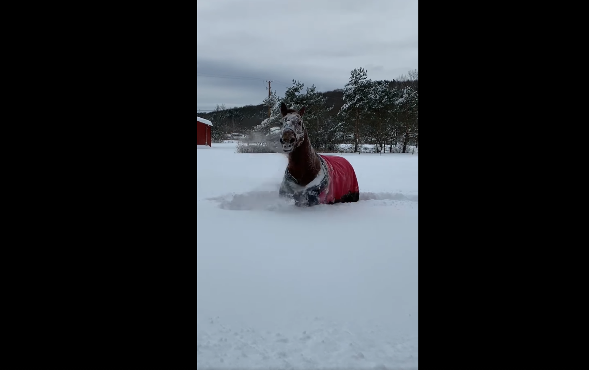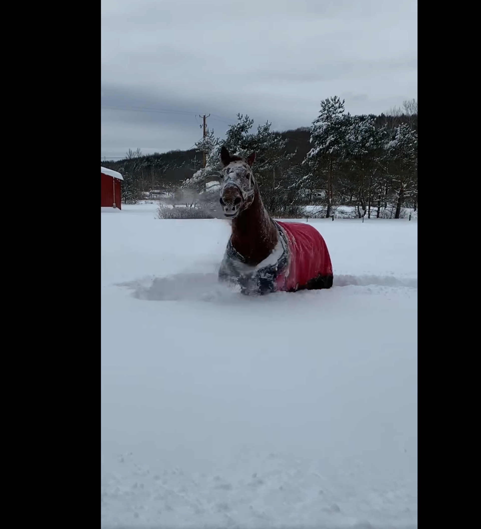 نشرت ريتشيل هيوستون مشهدا لطيفا لحصان يستمتع بالثلوج التي تغطي حقلها في ولاية نيويورك.