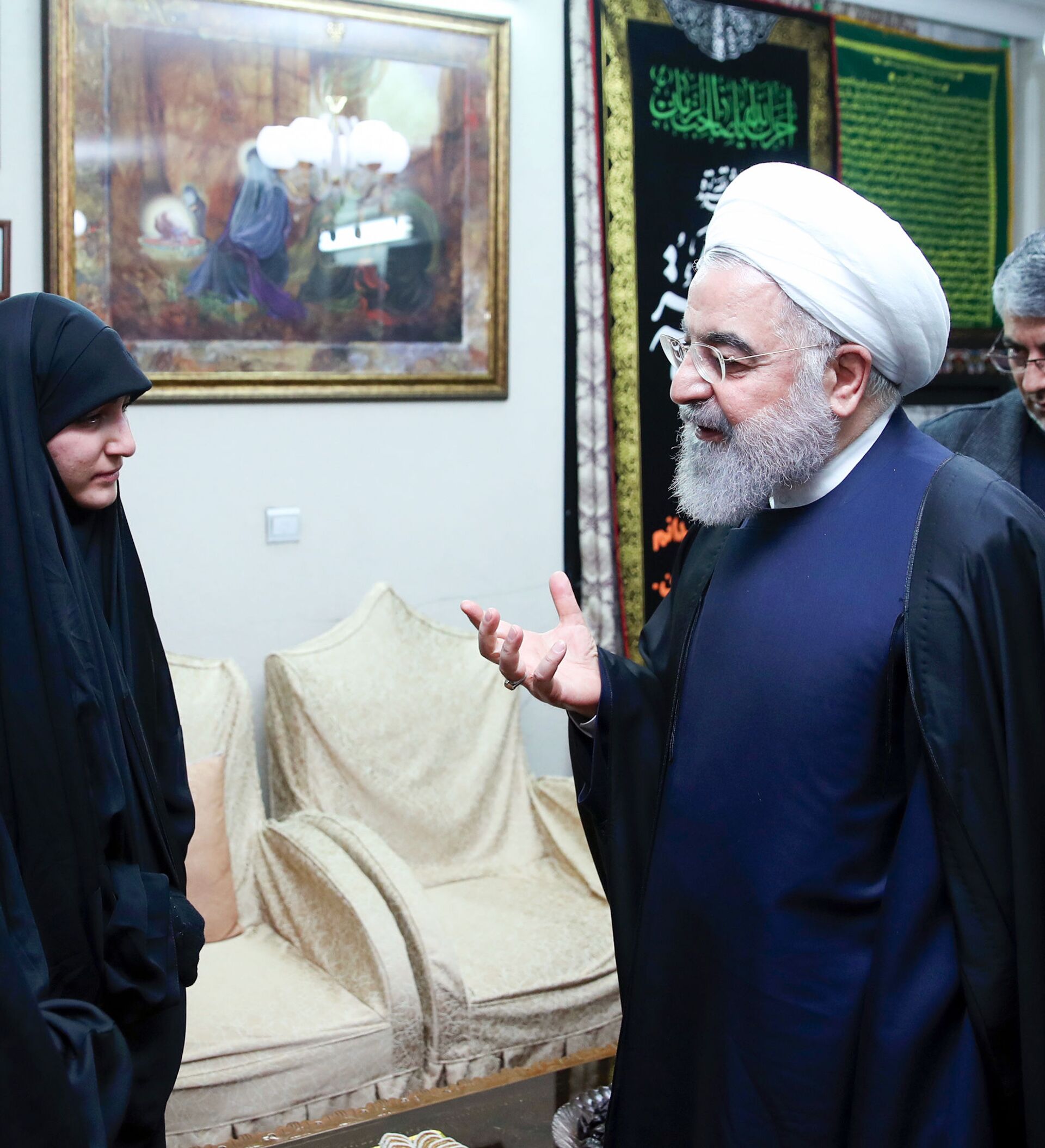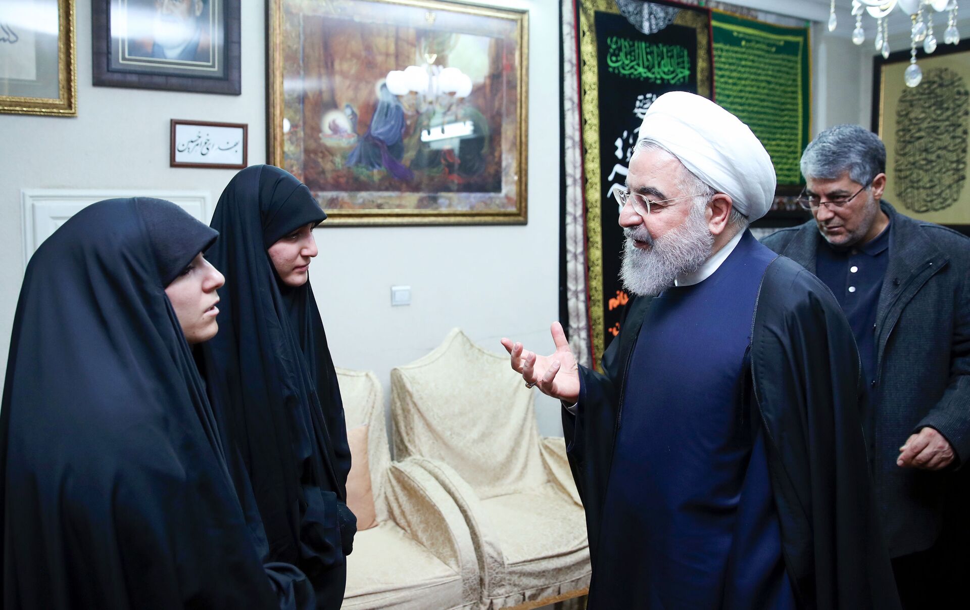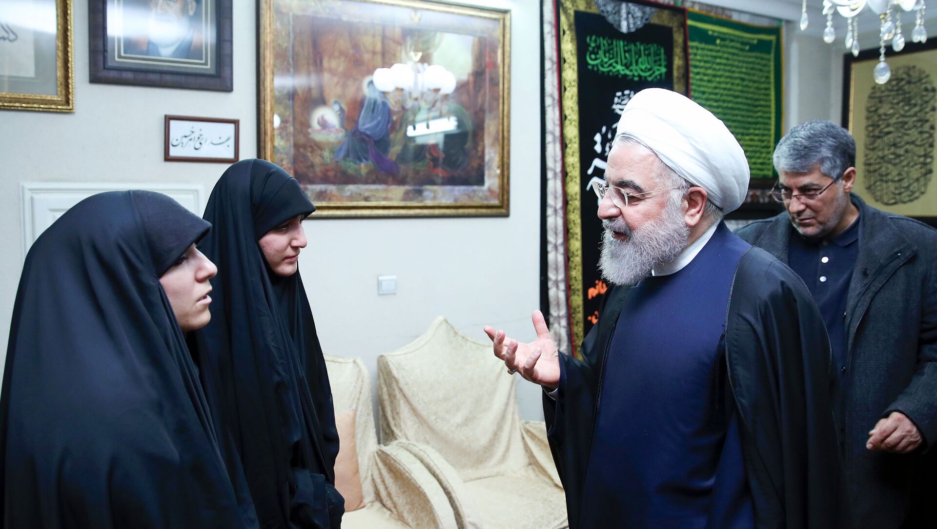 الرئيس الإيراني حسن روحاني في منزل قائد فيلق القدس الراحل قاسم سليماني - سبوتنيك عربي