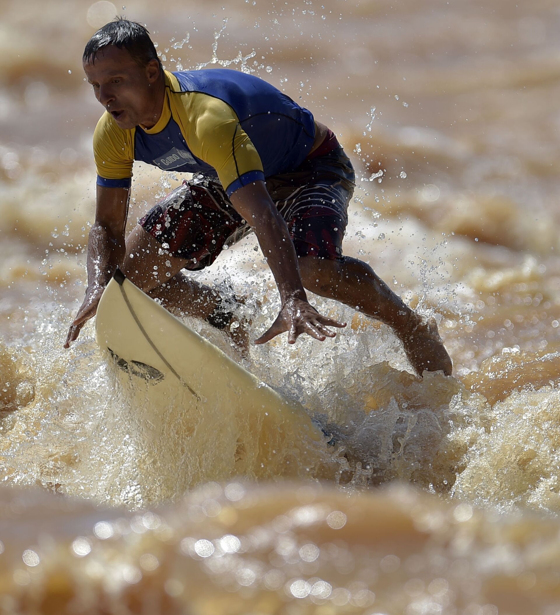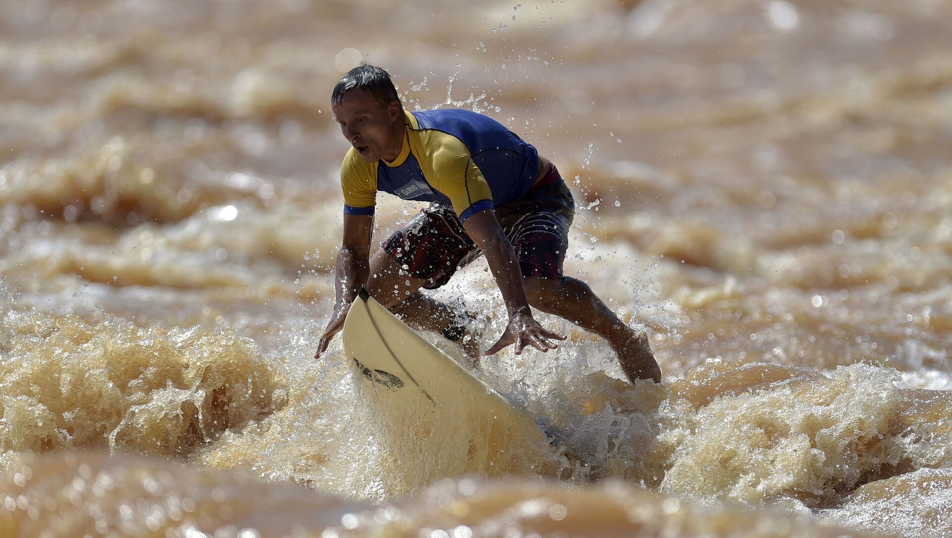 راكب الأمواج البرازيلي باولو غويدو على نهر دوسي في محافظة غوفيرنادور فالاداريس، البرازيل، 9 يناير 2021