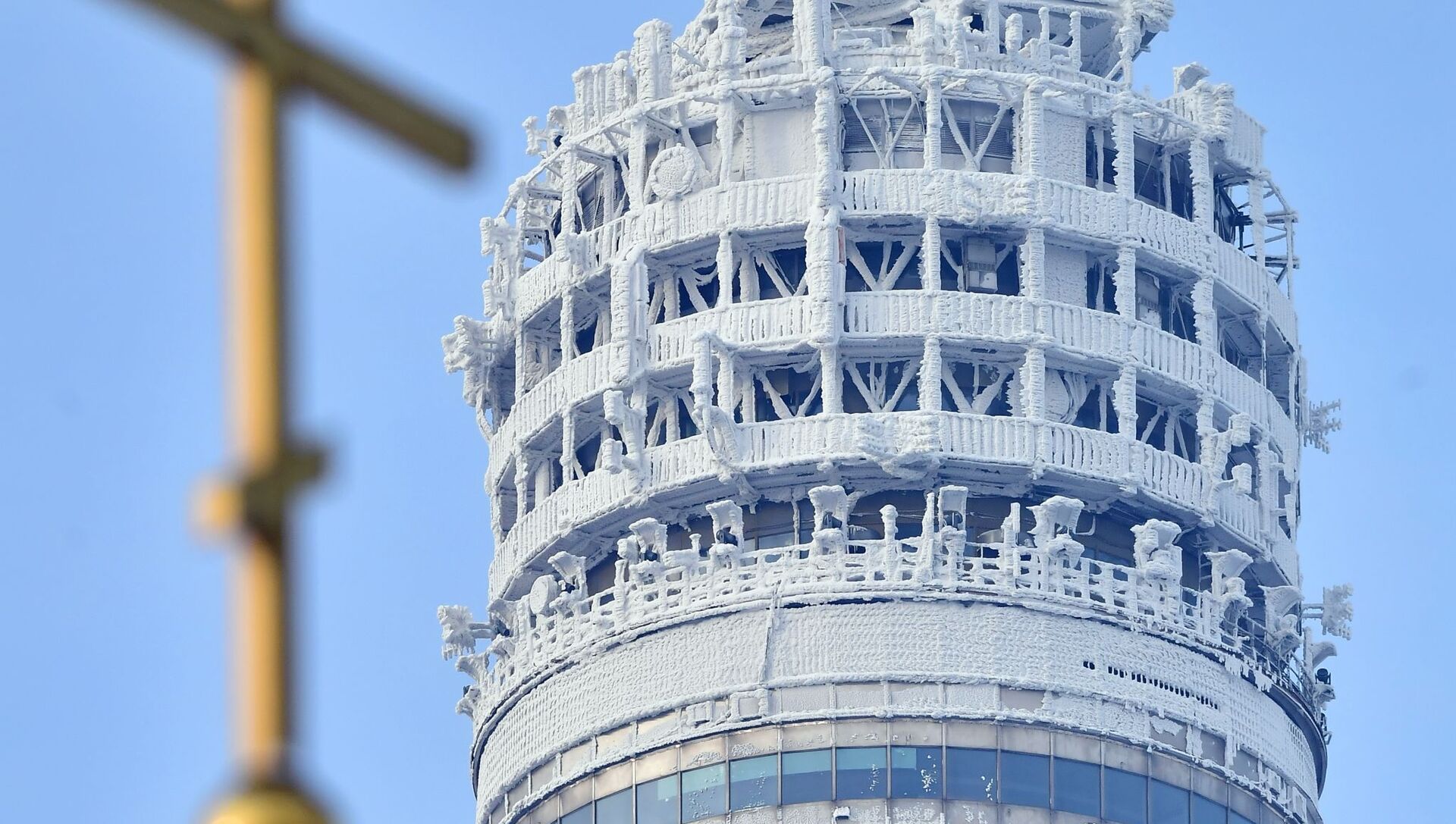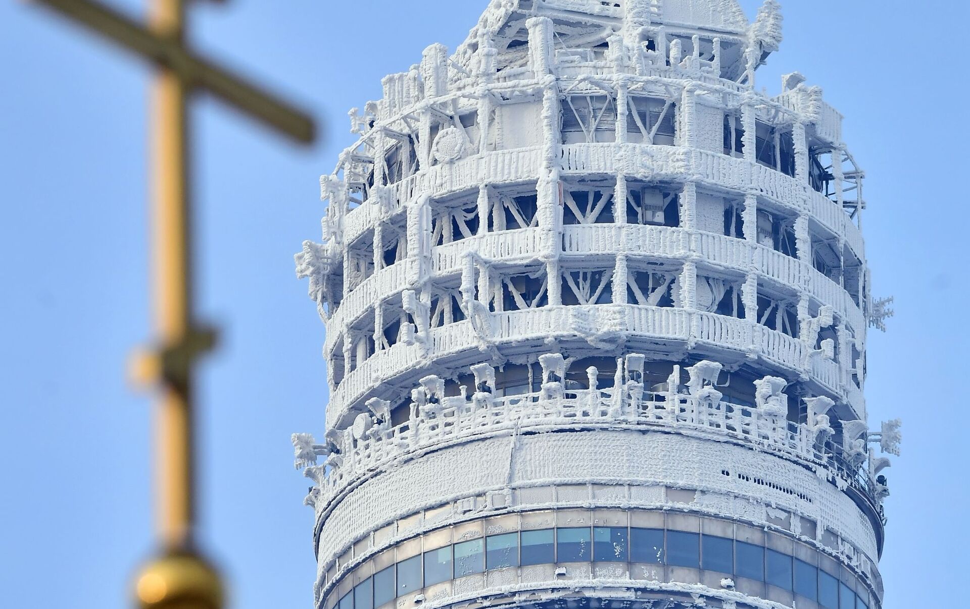 برج "أوستانكينو" للبث التلفزيوني في موسكو يعمل بسلاسة رغم تراكم الجليد عليه