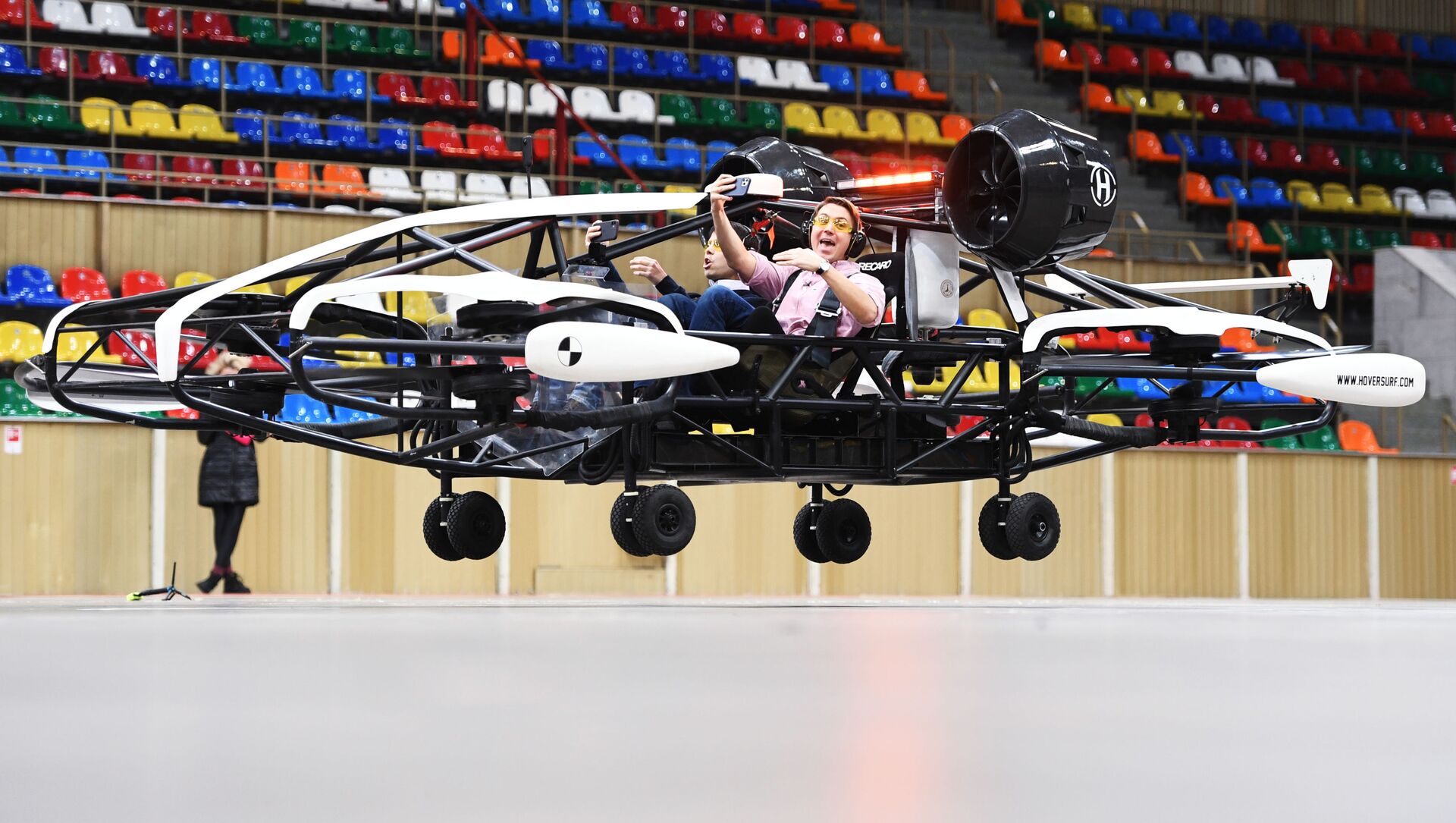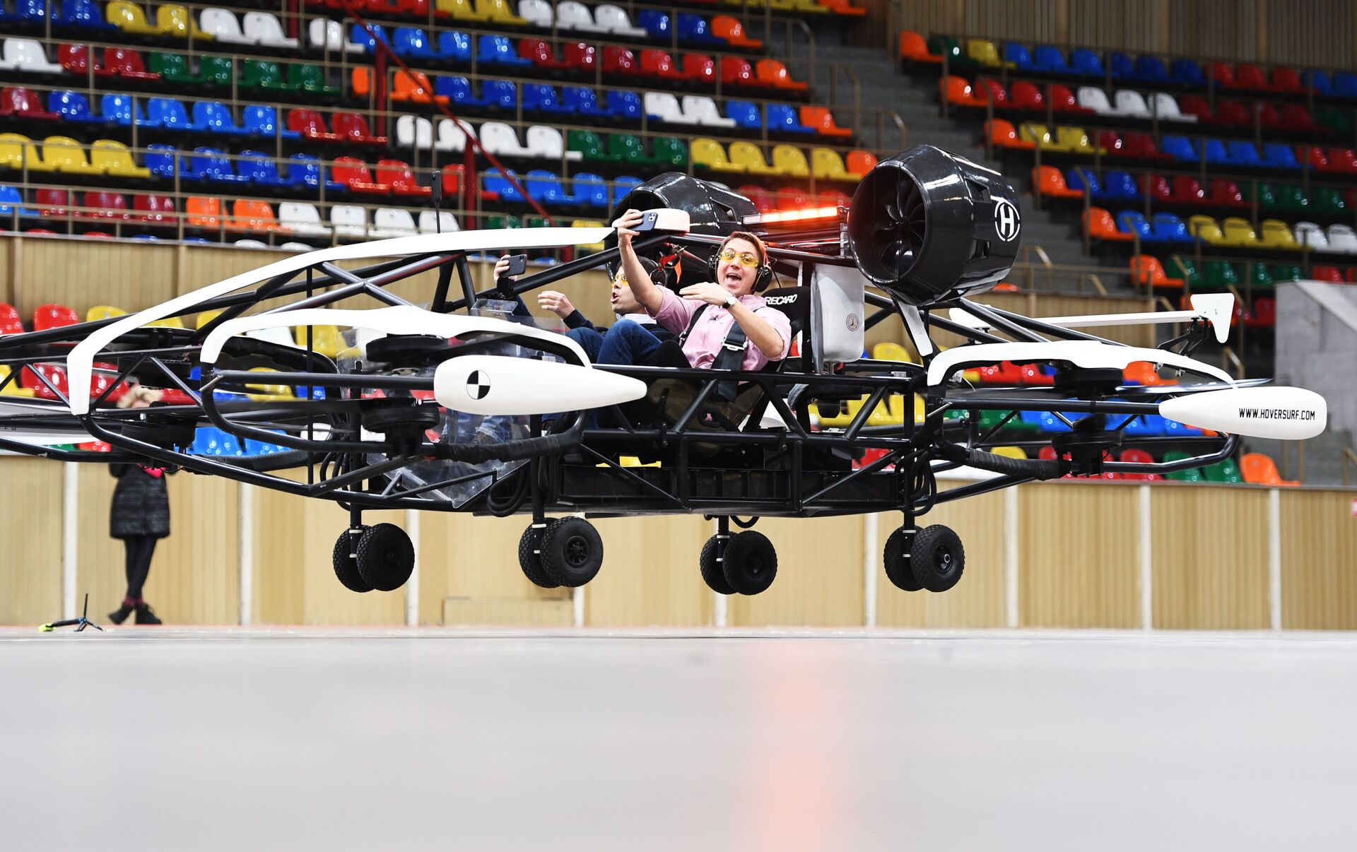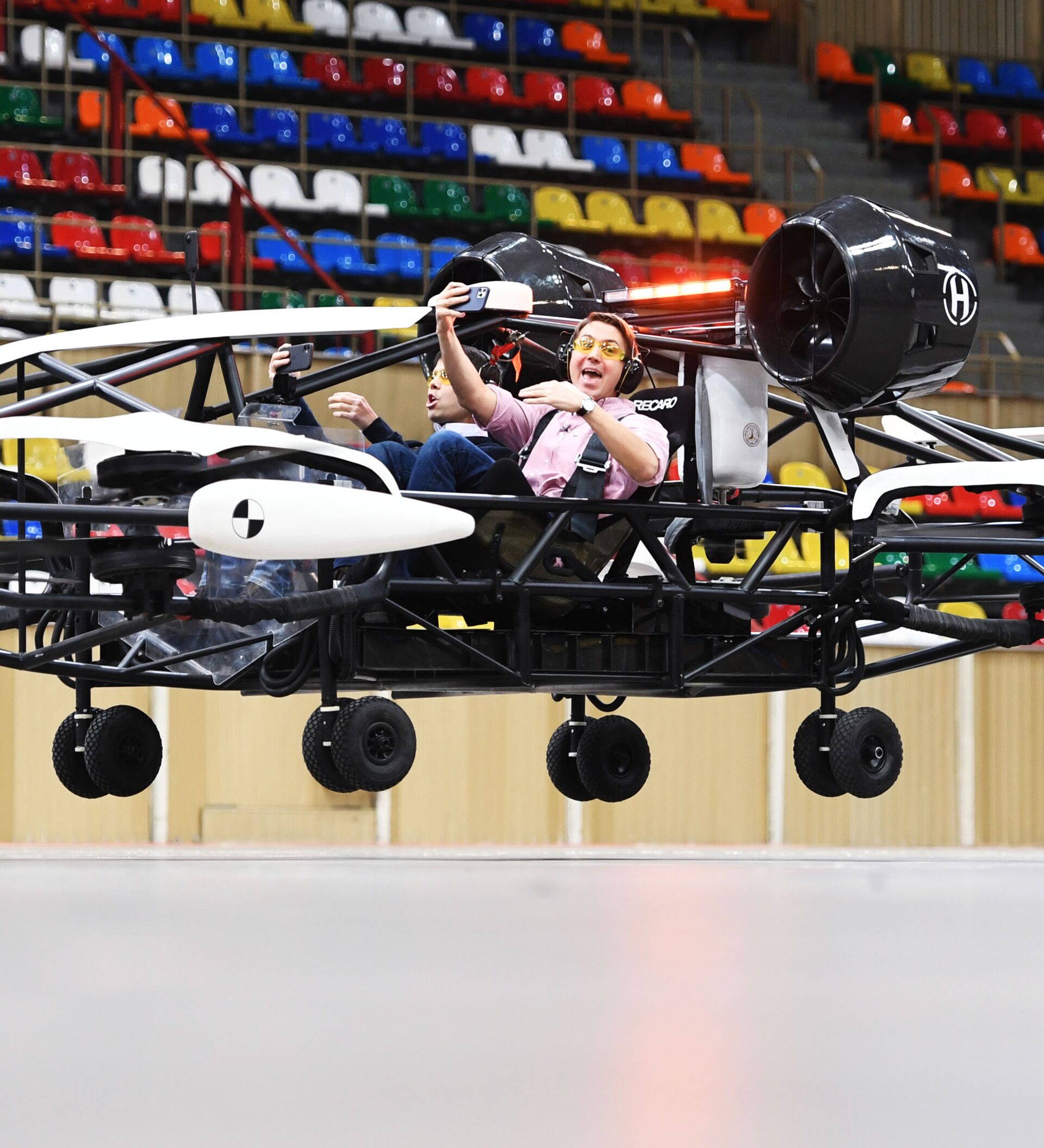 قامت شركة مشاركة في مجموعة موسكو للابتكار بتطوير سيارة لنقل الركاب من دون طيار (درون-تاكسي)، تعمل ببطارية كهربائية قابلة لإعادة الشحن ويمكنها حمل شخصين. يتم التحكم في المركبة من خلال نظام رقمي يستبعد الركاب تمامًا من القيادة ويراقب سلامة الرحلة والركاب.